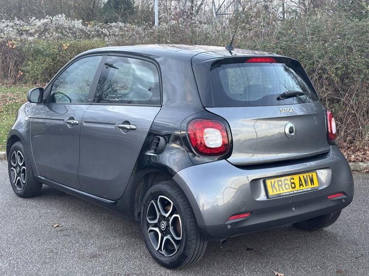 Discover this exceptional 2016 Smart forfour T Prime, boasting remarkably low mileage for its age at just 35, 954 miles and having had only two owners. This Euro 6 compliant 0.9L petrol model comes with a clear vehicle history check, offering peace of mind. Inside, youll find a wealth of premium features designed for comfort and convenience, including the Cool and Audio Package with automatic climate control and Bluetooth connectivity, a fixed panoramic roof with sun protection, and heated seats for both the driver and front passenger. The Premium Plus equipment line further enhances the experience with automatic headlights, rear parking camera, and rear parking sensors. This Smart forfour T Prime stands out due to its impressive efficiency and affordability. Its low CO2 emissions and low insurance group highlight how it offers a more economical and budget friendly driving experience compared to many other vehicles in its class. This combination of low running costs, excellent condition, and desirable features makes it a compelling choice for anyone seeking a stylish and practical city car.