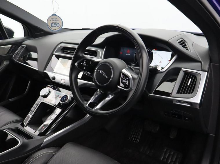 This 2022 Jaguar I-PACE 400 HSE Black is a superb example, having had only one owner since new. As a fully electric vehicle, it offers a smooth and quiet driving experience, supported by a capable Four Wheel Drive system. Its 90 kWh battery provides a maximum range of 277 miles when new, and you can conveniently recharge it at home using a 7kW charger in approximately 12 hours and 36 minutes, or achieve an 80% charge in just 50 minutes at a rapid public charging station. This particular I-PACE comes with a long MOT, ensuring peace of mind. Notable features include front and rear parking aids with parking assistance, a premium Meridian 3D Surround Sound System, a heated steering wheel for added comfort, a fixed panoramic roof to enhance the cabins sense of space, and adaptive cruise control with steering assist for effortless journeys. The performance of this Jaguar I-PACE is truly impressive, with a rapid 0-60mph acceleration time of just 4.5 seconds, demonstrating its dynamic capabilities. This acceleration figure highlights how this electric SUV offers a more exhilarating driving experience compared to many other vehicles in its class. Furthermore, the generous boot space provides ample practicality for everyday needs and longer trips, making it a versatile choice for various lifestyles.