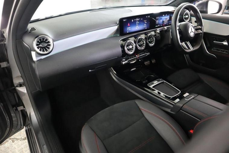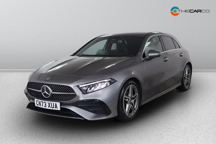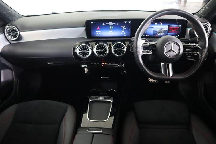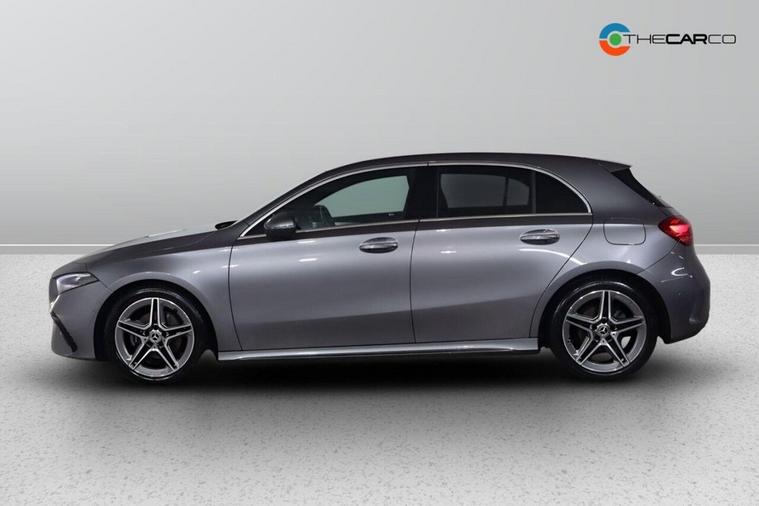 This 2023 Mercedes Benz A Class A180h AMG Line Executive is a superb example, having had only one owner since new. This Euro 6 compliant vehicle boasts a 1.3 litre petrol hybrid engine, offering an efficient and responsive drive. The AMG Line trim enhances its sporty appeal, while the Executive package adds further refinement. Notable features include KEYLESS GO for effortless access, a Parking Package with a rear camera to assist with manoeuvring, and THERMATIC automatic climate control for consistent comfort. Enjoy seamless connectivity with Smartphone Integration, including Android Auto and Apple CarPlay, and experience superior visibility with LED High Performance Headlamps featuring Adaptive High Beam Assist. The generous boot space ensures practicality for all your needs, making this A Class a versatile choice. Its acceleration from 0 to 62mph in just 9.2 seconds demonstrates its capable performance. These highlights, such as the advanced lighting system and the efficient hybrid powertrain, position this Mercedes Benz A Class favourably against other vehicles in its class, offering a blend of luxury, technology, and dynamic driving.