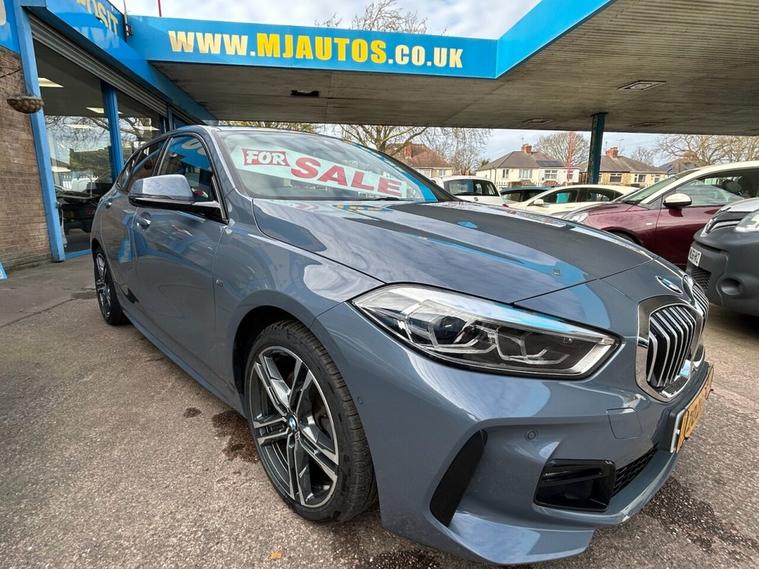 Storm Bay Metallic BMW 118 M Sport 1.5 petrol with Just 29, 000 miles, and Just 1 Owner from New, with Service History. LIVE COCKPIT PRO model with over £3500 worth of opitional extras, Boasting Dakota Black Leather Sport Seats with Blue Stitching, Heated Seats, Touch Screen Satellite Navigation system, DAB Radio with USB, Bluetooth, Screen Mirroring for Apple CarPlay, Android Auto, USB, Bluetooth for all your streaming needs, Multi-function M Sport Steering wheel, M Sport Suspension, M Sports package, M Sport Aerodynamics pack, Heads Up Display, Cruise Control, Reverse Camera with Front and Rear Parking Sensors, 18in Alloys wheels with Continental Tyres all round -inc 2x New tyres, NEW MOT on delivery, Superb Drive and Great Looking Car!! Feel at ease buying from a trusted company. Established over 45 years! Buy With Confidence from MJ AUTOS THE FAMILY BUSINESS ESTABLISHED IN 1979. Require finance?? Apply on our website or in the showroom! Part-Exchange? Got a Car or Van to Part-Exchange?? Ask us for a quote! Contact us by phone, email or social, or just pop in and see us!! VIDEO VIEWINGS AVAILABLE - We make it easy for you to buy your new car online- VIEW ~ RESERVE ~ COLLECT or DELIVER