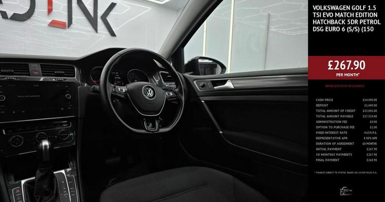 A well-maintained, Euro 6 compliant 1.5 TSI producing 150ps, paired with the smooth DSG automatic gearbox. This Match Edition offers a refined drive, strong fuel efficiency, and a smart hatchback design ideal for both city and motorway use. Equipped with sought-after features, a comfortable interior, and Volkswagens renowned build quality, its a reliable and versatile choice for any driver. Perfectly presented and ready to drive away.