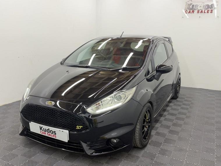 2017 FORD FIESTA 1.6 ST-3 3dr - EXCEPTIONAL EXAMPLE AND IN THE BEST COLOUR, SHADOW BLACK. ** NO ENGINE MODS **NO DEPOSIT FINANCE AVAILABLE FROM ONLY £192 per mth. 6 MONTHS WARRANTY INCLUDED. EACH VEHICLE COMES WITH A FREE HPI CLEAR REPORT AND 1 YEAR AA BREAKDOWN COVER. 61000 MILES. FULL SERVICE HISTORY AND JUST SERVICED. MOT UNTIL 09/12/2026. **HUGE SPEC** NO ENGINE MODS, HALF LEATHER RECARO INTERIOR, HEATED SEATS, SATNAV, CRUISE CONTROL, POWER FOLDING MIRRORS, KEYLESS PUSH BUTTON START, LED DAYTIME LIGHTS, BLUETOOTH, DAB RADIO, HEATED WINDSCREEN, ELEC WINDOWS AND MIRRORS, UNMARKED ALLOY WHEELS. LOWERED WITH COILOVERS. FINANCE PACKAGES - With a number of lenders on board i am able to offer Finance to suit individual circumstances, including Sub Prime. All CARS ARE HPI CHECKED AND CLEAR.WARRANTY - At KUDOS CAR SALES every vehicle comes with a FREE 6 MONTH Warranty. Any repairs under warranty can be carried out at your local garage - Extended warranty available on request at extra cost.PREVIOUS NON dealer's website WITH ALL THE DOCS AND BOOKS AND LOCKING WHEEL NUT. ***ALL PART EXCHANGES CONSIDERED***