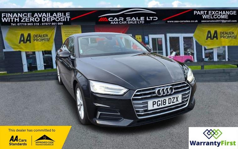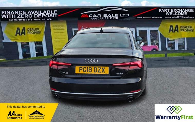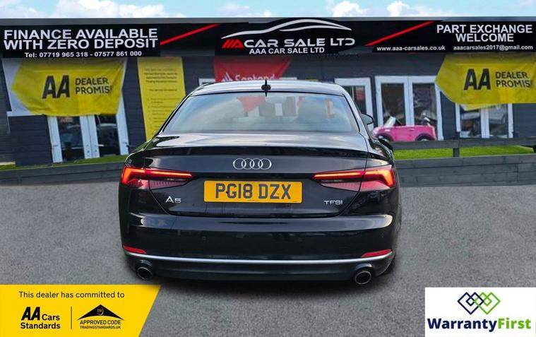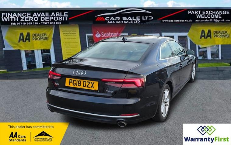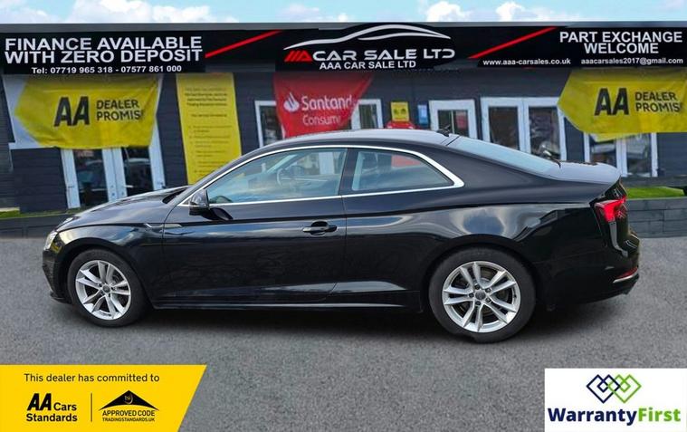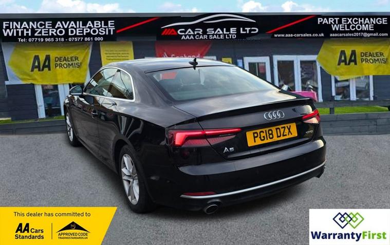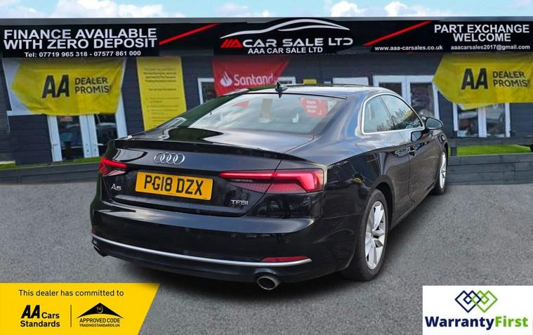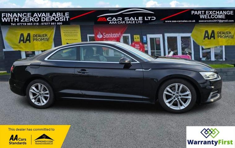 **AAA CAR SALES DARLINGTON LTD HAVE THE PLEASURE TO PRESENT THIS AUDI A5 2.0 TFSI Sport Coupe 2dr Petrol S Tronic Euro 6 (s/s) (190 ps) IN MYTHOS BLACK PAINTWORK **** SERVICED AT 5K, 17K, 28K, 34K, 42K, 53K, 72K, 96K. ALL OUR CARS GO THROUGH 72 POINT INSPECTION, ALL OF OUR CARS COME WITH 12 MONTHS AA BREAKDOWN COVER, FRESH MONTH MOT WITHOUT ADVISORIES, INTERIM SERVICE, HPI CHECKED VIA EXPERIAN, 3 MONTHS WARRANTY WITH THE OPTION TO UPGRADE ***AUTOTRADER CUSTOMER SERVICE AWARD 2019, 2020 2021. 2022 & 2023, 2024 ***, WE ARE OPEN 7 DAYS A WEEK FOR YOUR CONVIENIENCE, CALL 01325950841 OR EMAIL US AT hello dealer's website or website dealer's website YOU CAN BUY WITH FULL CONFIDENCE FROM AAA CARS CHECK OUR AUTOTRADER REVIEWS FOR FULL PEACE OF MIND,