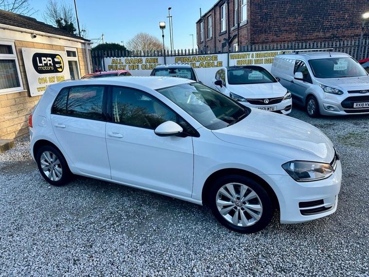 LPR MOTORS OF SHEFFIELD ARE PLEASED TO OFFER THE EVER POPULAR AND SOUGHT-AFTER VOLKSWAGEN GOLF 1598CC TDI SE BLUEMOTION 5 DOOR HATCHBACK. VERY VERY RARE 1 OWNER FROM NEW. FANTASTIC COLOUR COMBINATION GLOSS WHITE PAINT TO THE EXTERIOR WITH TITAN BLACK MERLIN CLOTH INTERIOR. ONLY £20 A YEAR TAX TO PAY, GREAT SPEC, INCLUDES AIR CONDITIONING FULL SCREEN ENTERTAINMENT SYSTEM, REVERSE SENSORS, ALLOY WHEELS AND SAT NAV, THIS 1 OWNER GOLF HAS BEEN WELL LOOKED AFTER BOTH MECHANICALLY AND COSMETICALLY BY ITS PREVIOUS OWNER, EXCELLENT SERVICE HISTORY WITH 7 SERVICES NDOCUMENTED, LAST SERVICED WITH ITS MOT 09.12.26, ADVISORY FREE MOT AS DISCS AND PADS WER REPLACED. TIMING BELT AND WATER PUMP CHANGED 20.08.2021 AT 85074 MILES. WHICH MEANS THIS GOLF WHICH NEEDS TO BE VIEWED AND TEST DRIVEN WILL BE READY TO DRIVE AWAY THE SAME DAY. EXCELLENT CONDITION THROUGHOUT. ALL TYRES IN GREAT ORDER. FULLY HPI CLEAR ANY INSPECTION WELCOME, PLEASE CALL LPR MOTORS OF SHEFFIELD ON 01143383342 TO ARRANGE A VIEWING OR RESERVE, PX WELCOME.FINANCE AVAILABE. 12 MONTHS AA ROADSIDE ASSISTANCE INCLUDED. NEW ARRIVAL SO BE QUICK TO PURCHASE THIS STUNNING 1 OWNER HIGHLY SERVICED HIGH SPEC GOLF