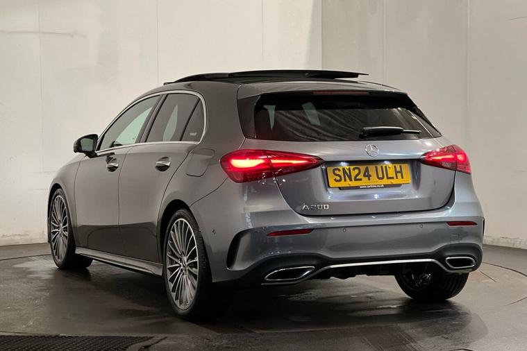 With an exceptionally low mileage of just 6435 miles for a 2024 model, this Mercedes-Benz A Class A200h AMG Line (Premium Plus) presents a remarkable opportunity. This Euro 6 compliant vehicle boasts a 1.3 litre petrol hybrid engine and has had only one owner from new, with a clear vehicle history check. The AMG Line trim enhances its sporty appeal, while the Premium Plus package includes a sophisticated Head Up Display, Active Parking Assist with front and rear sensors, and a comprehensive Parking Package featuring a 360 degree camera for effortless manoeuvring. Enjoy seamless connectivity with dual Bluetooth interfaces and immerse yourself in the premium audio experience delivered by the advanced 225W Mercedes-Benz Sound System. This Mercedes-Benz A Class is designed to impress, offering a blend of performance and practicality. Its impressive acceleration, reaching 0-60mph in just 8.2 seconds, demonstrates its dynamic capabilities, setting it apart from many similar vehicles. Furthermore, the generous boot space ensures you have ample room for luggage or shopping, making it a versatile choice for everyday life. The combination of its low mileage, single owner provenance, and advanced features like the Head Up Display and 360 degree camera, clearly indicates that this A Class offers a superior ownership experience compared to other vehicles in its class.