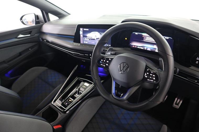 Boasting exceptionally low mileage for its age, this 2023 Volkswagen Golf TSI R presents a remarkable opportunity. With only one owner since new and a mere 7586 miles on the clock, this Euro 6 compliant model is powered by a potent 2.0 litre petrol engine and features a sophisticated four wheel drive system. Inside, you'll find a heated multifunction leather steering wheel, complete with Apple CarPlay and Android Auto compatibility via a premium USB C cable, offering a choice for your smartphone. Experience exhilarating performance with a rapid 0-62mph acceleration time of just 4.7 seconds, demonstrating its superior capability compared to other vehicles in its class. This Golf R is equipped with front and rear parking sensors, alongside Travel Assist which includes blind spot assistance and rear traffic alert, making manoeuvring and driving in busy conditions significantly easier. Furthermore, Adaptive Cruise Control enhances your driving experience on longer journeys, all while enjoying the generous boot space this model offers.