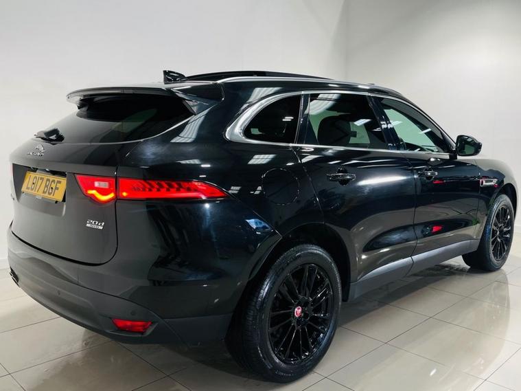 Jaguar F-PACE 2.0 D180 Portfolio SUV 5dr Diesel Auto AWD Euro 6 (s/s) (180 ps) Registration: LO17BGF | 53, 000 miles | Service History | Finished in Metallic Black with Luxury Portfolio Interior A beautifully presented Jaguar F-PACE 2.0 D180 Portfolio, finished in sleek Metallic Black and enhanced with premium factory upgrades. As the luxury-focused Portfolio model, it delivers exceptional comfort, refined performance and a truly premium interior, while still benefiting from Jaguars dynamic handling and practical SUV capability This example is superbly specified with a Sliding Panoramic Sunroof, Privacy Glass, the upgraded Touch Pro Navigation Pack, and striking Gloss Black 20-inch Alloy Wheels, giving it impressive presence inside and out. Powered by the smooth and efficient 180 PS diesel engine with Auto AWD, it offers effortless everyday usability, strong fuel economy and all-weather confidence Key Features 2.0 D180 diesel engine (180 PS) Automatic transmission All-Wheel Drive Euro 6 ULEZ compliant Sliding Panoramic Sunroof Privacy Glass Touch Pro Navigation Pack Gloss Black 20-inch Alloy Wheels LED headlights with signature DRLs Luxury Portfolio full leather interior Electric-adjust front seats Heated front seats Dual-zone climate control Meridian sound system (if fitted confirmable) Reversing camera & parking sensors Cruise control & speed limiter Bluetooth, DAB radio & smartphone interface Power tailgate Keyless start Additional Information 53, 000 miles covered Service History AA 128 Point Inspection available on request Road tax: £195 per year A refined and luxurious Jaguar F-PACE Portfolio, finished in Metallic Black with the desirable Panoramic Roof, Touch Pro Navigation and Gloss Black 20-inch Wheels a premium SUV offering comfort, style and outstanding everyday practicality