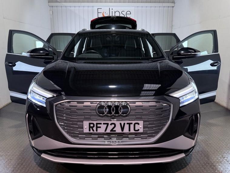 New MOT Upon Sale, 20 Inch Alloy Wheels, Heated Front Seats, Wireless Apple Car play + Android Auto , Rear Park Assist Really nice Audi Q4 E-Tron 35 S-Line Electric Auto in Mythos Black Metallic with half grey Heated leather S-Line Sports seats with S Logo, serviced by Audi main dealer at 12000 miles and will be supplied with a new MOT at the point of sale. Specification includes Colour Navigation, Automatic with Audi drive select, Apple car play or Android auto via Bletooth , DAB Radio, Dual zone Air Conditioning , remote central locking with 2 keys, electric folding mirrors , electric power tailgate, parking sensors, privacy , 20 inch Alloys, plus lots more, great condition with very low mileage