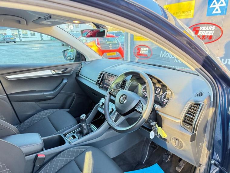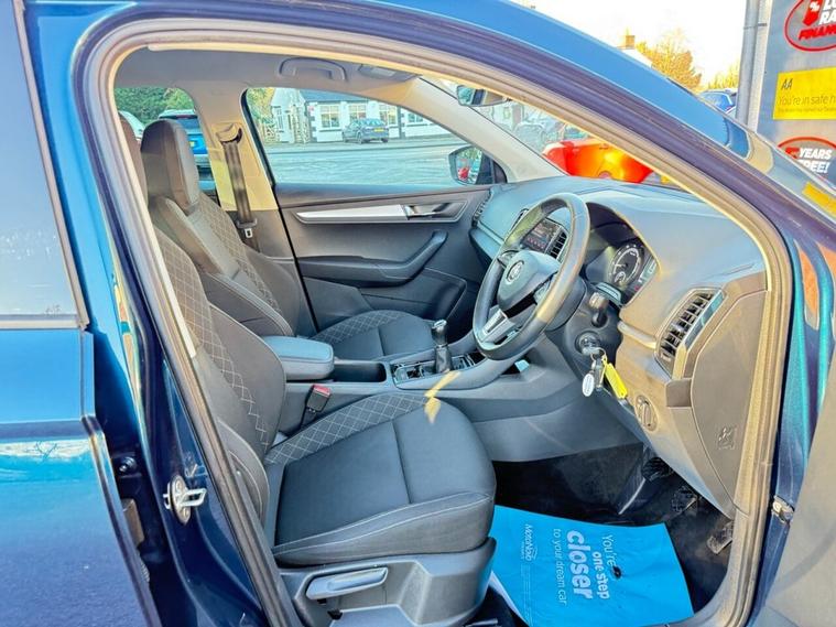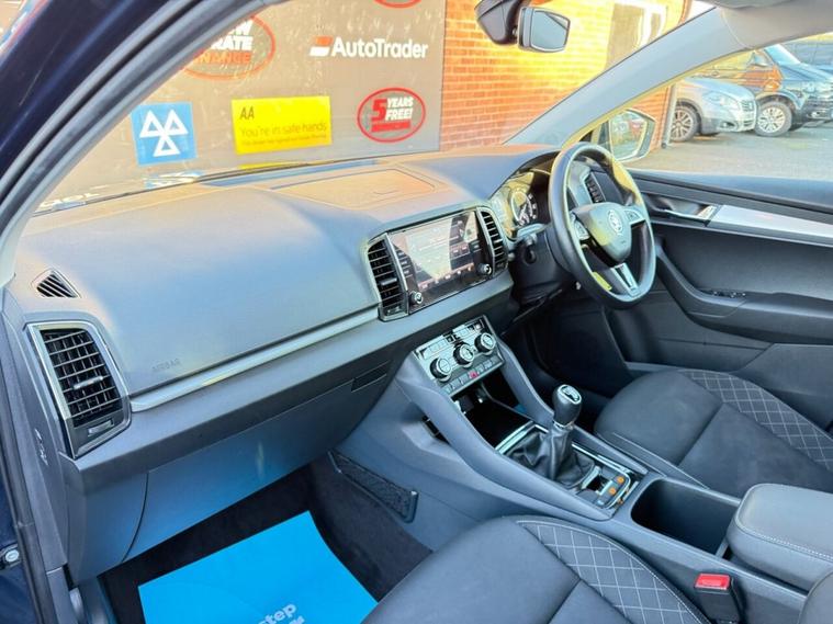 This 2018 Skoda Karoq TSI SE presents a remarkable opportunity with its exceptionally low mileage of just 54, 054 miles. This Euro 6 compliant 1.5 litre petrol engine is housed within the SE trim, offering a blend of efficiency and performance. Inside, youll find thoughtful features such as small bags on the inside of the front seats for convenient storage, a 3 spoke leather sports multi-function steering wheel for comfortable control, and a level indicator to keep you informed. The Rain and Light Assistant, complete with an auto-dimming rear view mirror and automatic headlights, enhances driving convenience and safety. Seat belt signalisation is also included, ensuring all occupants are aware of their safety. The Skoda Karoq TSI SE stands out with its impressive fuel economy, achieving a highlight of 52 miles per gallon, which is better than many similar vehicles. Its acceleration is also noteworthy, reaching 0-60mph in a brisk 8.1 seconds, demonstrating its capable performance. Furthermore, this model benefits from a low insurance group and low CO2 emissions, making it an economical choice for everyday driving.