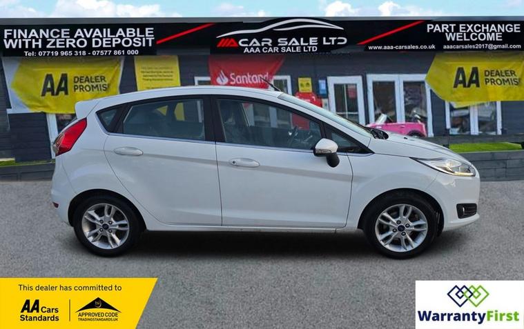 **AAA CAR SALES DARLINGTON LTD HAVE THE PLEASURE TO PRESENT THIS FORD FIESTA 1.25 Zetec Hatchback 5dr Petrol Manual Euro 6 (82 ps) IN FROZEN WHITE PAINT, FULL SERVICE HISTORY - SERVICED AT 5K, 16K, 24K, 33K, 42K, 53K, 64K, AND SERVICED BY US AT 79K.. ALL OUR CARS GO THROUGH 72 POINT INSPECTION, ALL OF OUR CARS COME WITH 12 MONTHS AA BREAKDOWN COVER, FRESH MOT, INTERIM SERVICE, HPI CHECKED VIA EXPERIAN, 3 MONTHS WARRANTY WITH THE OPTION TO UPGRADE ***AUTOTRADER CUSTOMER SERVICE AWARD 2019, 2020, 2021, 2022, 2023 and 2024 YEAR ON YEAR***, WE ARE OPEN 7 DAYS A WEEK FOR YOUR CONVIENIENCE, CALL 01325950841 OR EMAIL US AT hello dealer's website or visit our website dealer's website , Service history, Clean bodywork, Cloth interior - Clean Condition, Tyre condition good, YOU CAN BUY WITH FULL CONFIDENCE FROM AAA CARS CHECK OUR AUTOTRADER REVIEWS FOR FULL PEACE OF MIND,