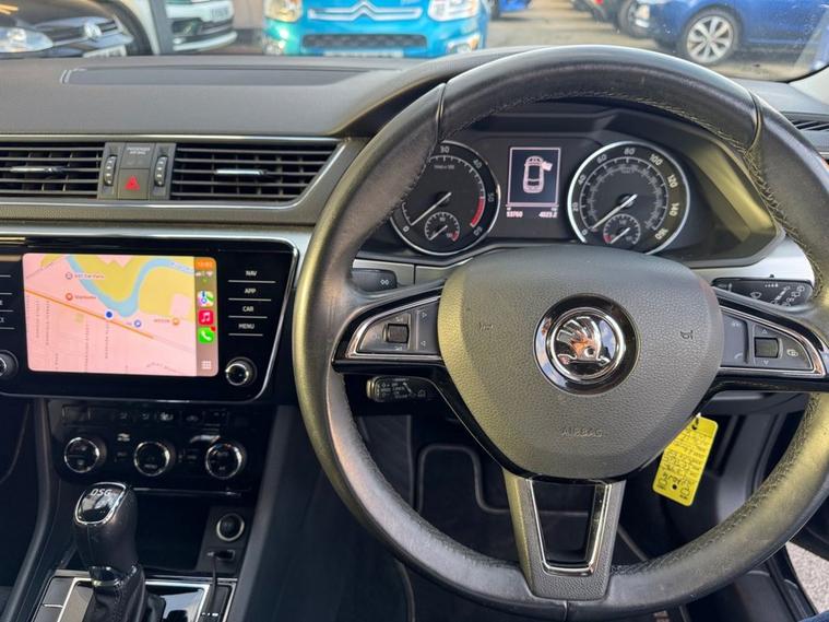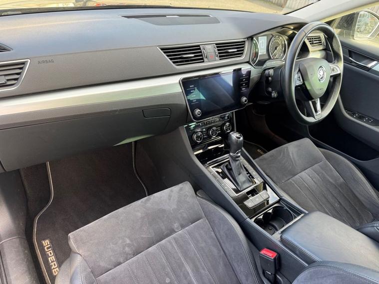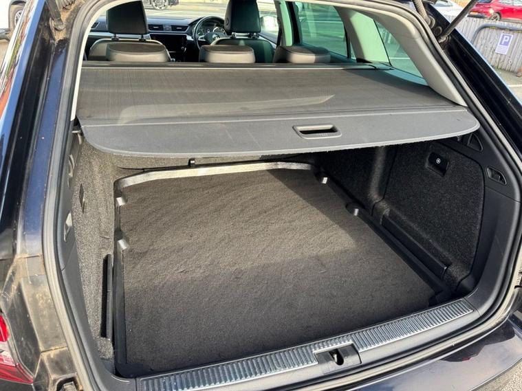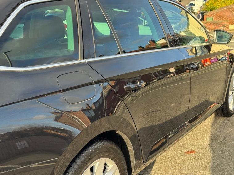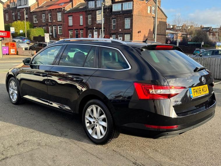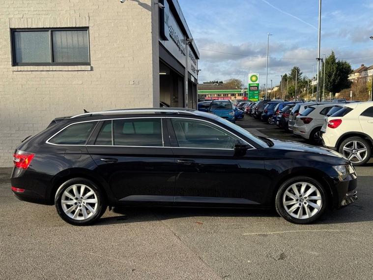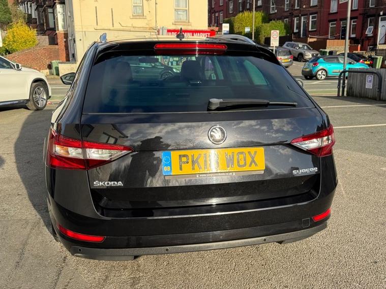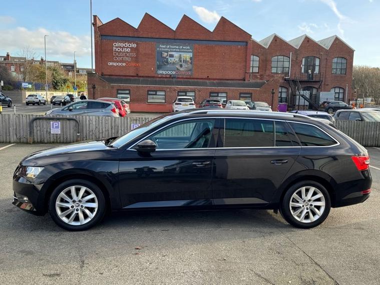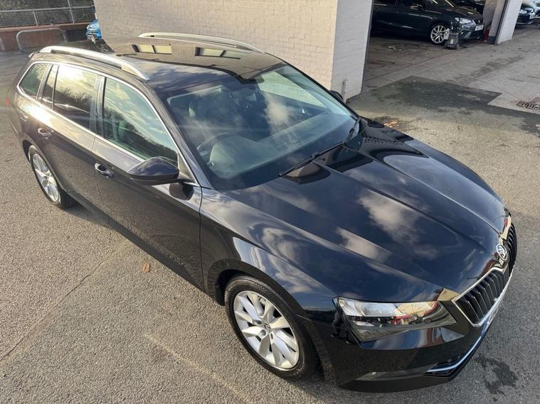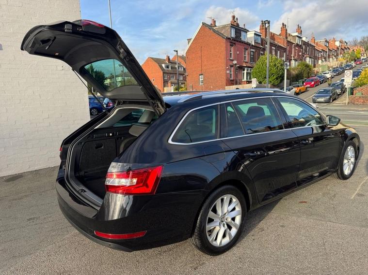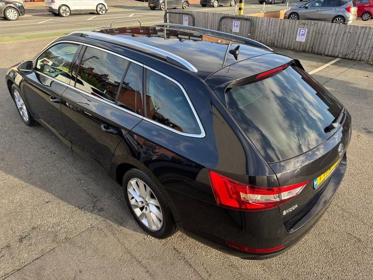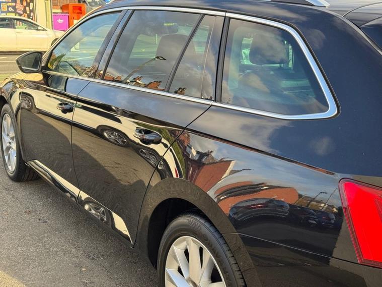 Skoda Superb 2.0 TDI Estate AUTO in Black Metallic Paintwork with 17 Silver Alloys. Low miles with only 2 OWNERS FROM NEW (Last owner for 5 years). Full service history, MOT 05/2026 and timing belt changed at 28, 000 miles in April 2023. Excellent spec example includes half leather/velour interior, drivers electric seat adjust with memory function, cruise control, front/rear parking sensors, power folding wing mirrors, 7 speed gearbox, trip computer, sat nav, apple carplay/android auto, DAB radio, climate control with A/C, auto headlights and wipers, multi-function steering, driving modes and much more. Call 01138032273 or visit dealer's website today.