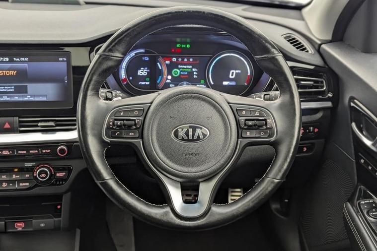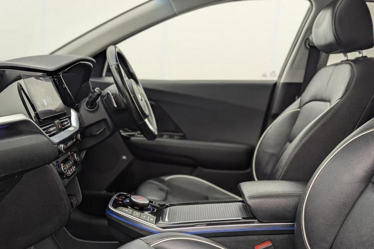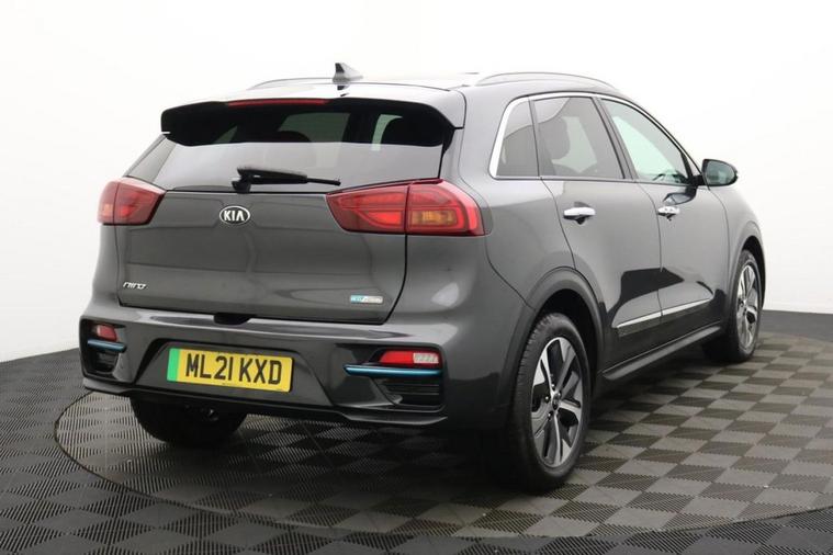 Henson Car Store Presents the KIA NIRO 64kWh 4+ SUV 5dr Electric Auto finished in Grey, this car comes with service history and is VAT qualifying. This 2021 Kia Niro 4+ electric vehicle has been cherished by only one owner since new, offering a superb ownership proposition. This electric model boasts a substantial 68 kWh battery, providing an impressive maximum range of 282 miles when new. For convenience, a full charge at home using a 7kW charger takes approximately 9 hours and 35 minutes, while rapid public charging can replenish the battery from empty to 80% in as little as 54 minutes. Notable features include striking LED headlights with bi-function projection, ensuring excellent visibility. Inside, occupants will appreciate the comfort of heated outer rear seats and a heated steering wheel, perfect for colder journeys. Keyless entry is provided by the smart entry system, which also includes an engine start-stop button for effortless ignition. Stay connected and entertained with Bluetooth connectivity, enabling music streaming. The 282 mile maximum range at new is a significant highlight, demonstrating the Niros capability for both daily commutes and longer trips, setting it apart from many other electric vehicles. The inclusion of heated outer rear seats and a heated steering wheel further enhances passenger comfort, offering a more premium experience than you might expect. These thoughtful features, combined with the efficient electric powertrain and the vehicles single owner provenance, make this Kia Niro 4+ a compelling choice for those seeking a practical and well equipped electric car.