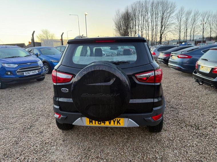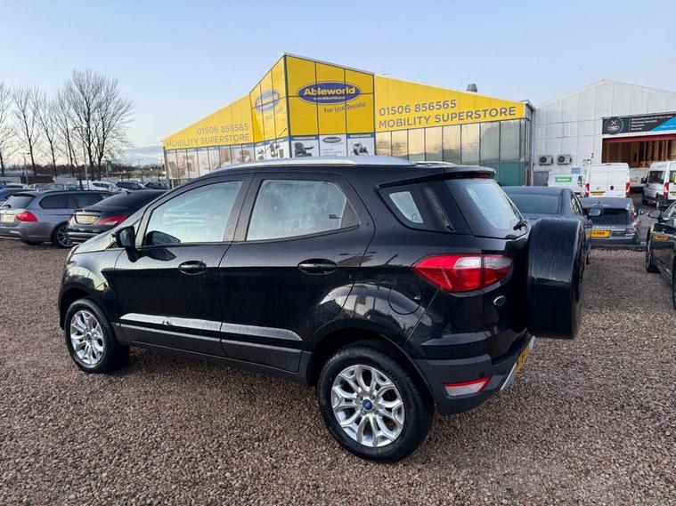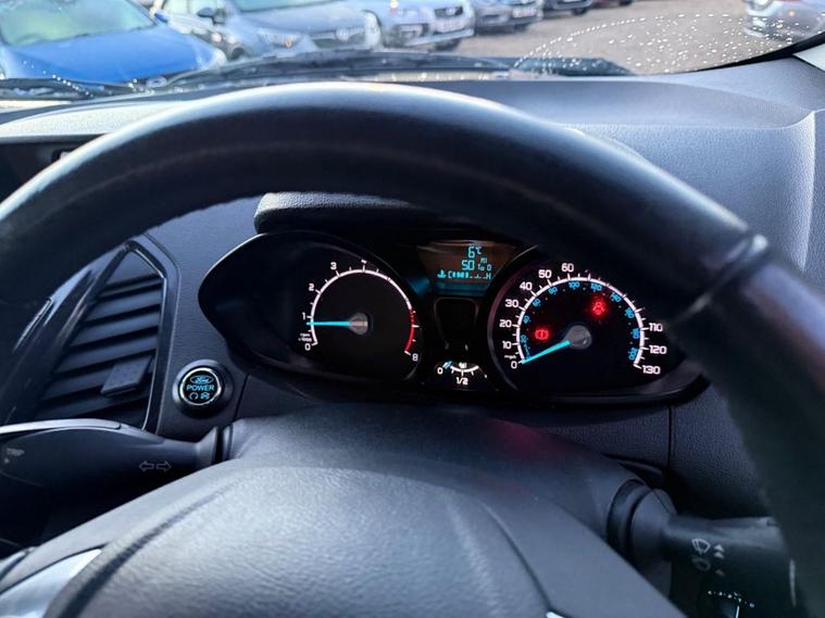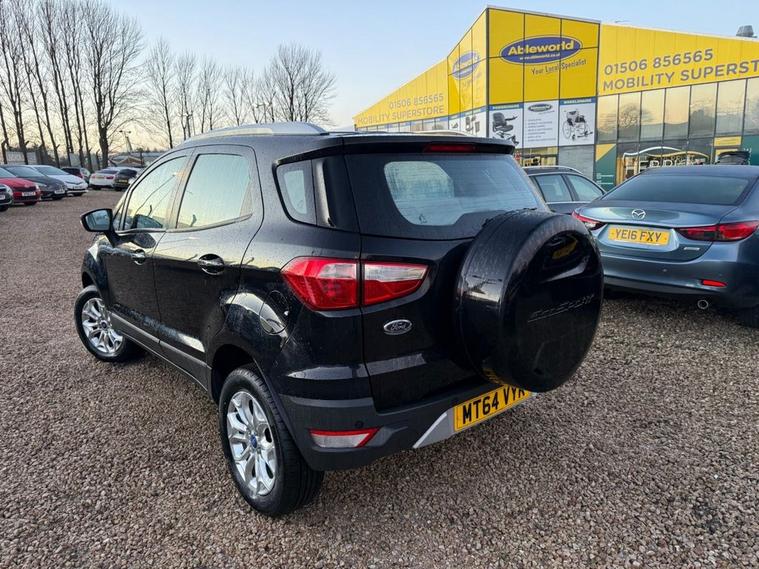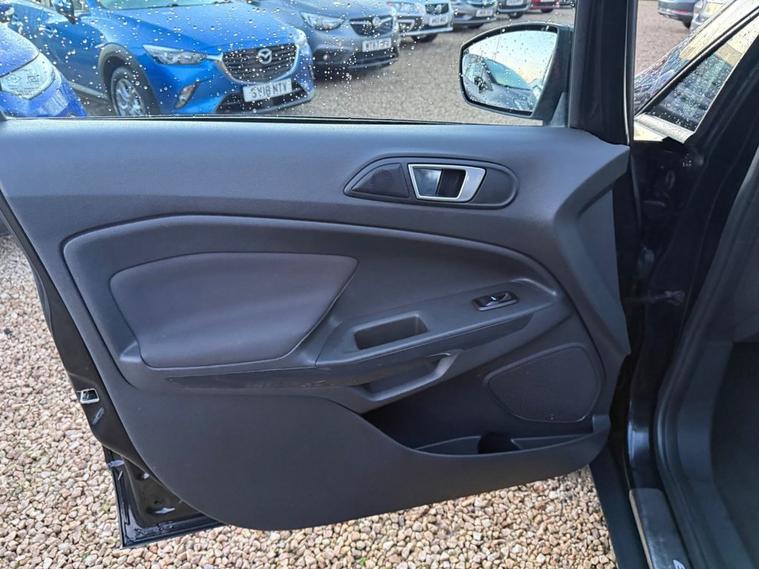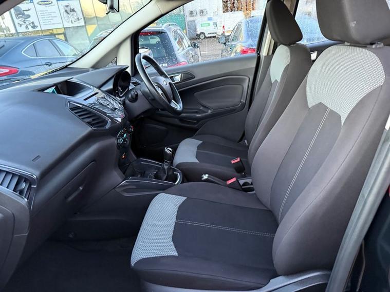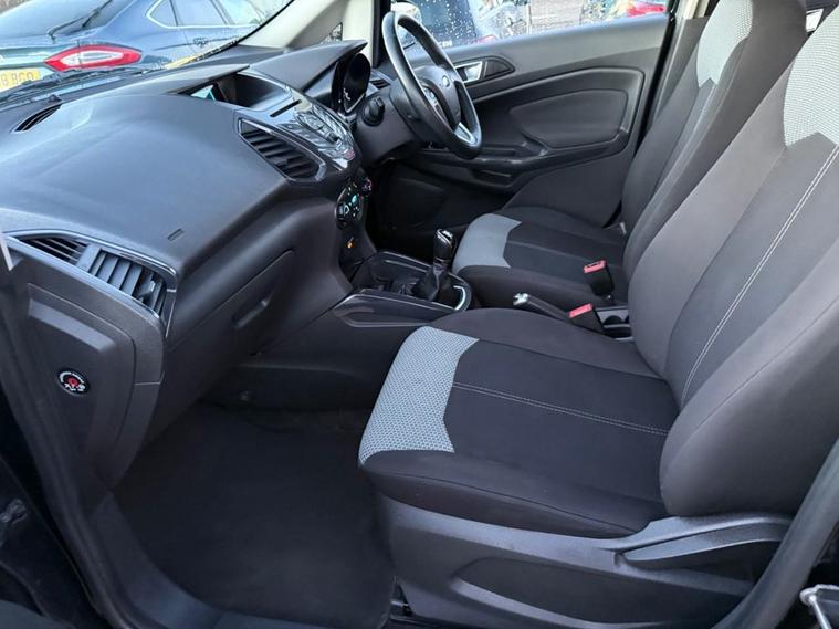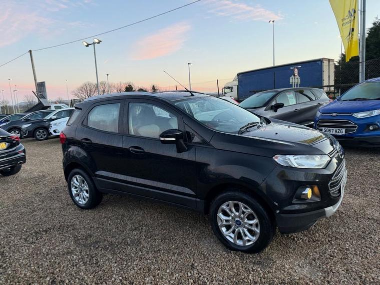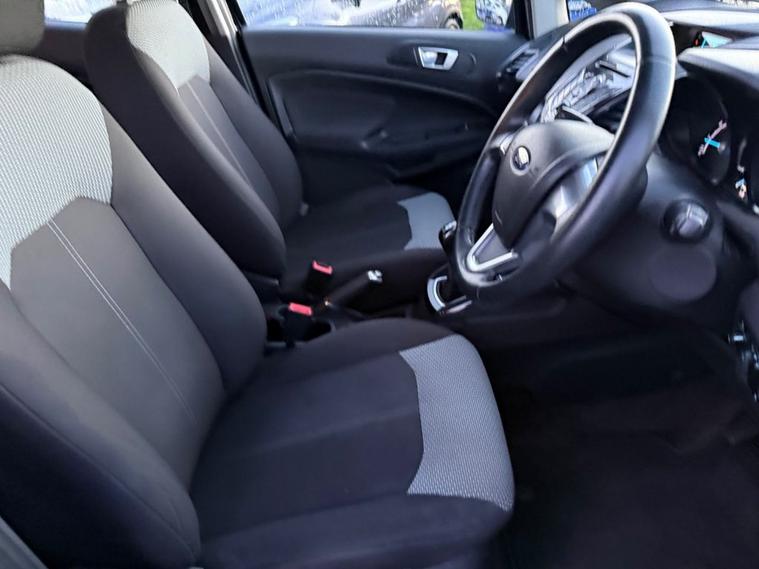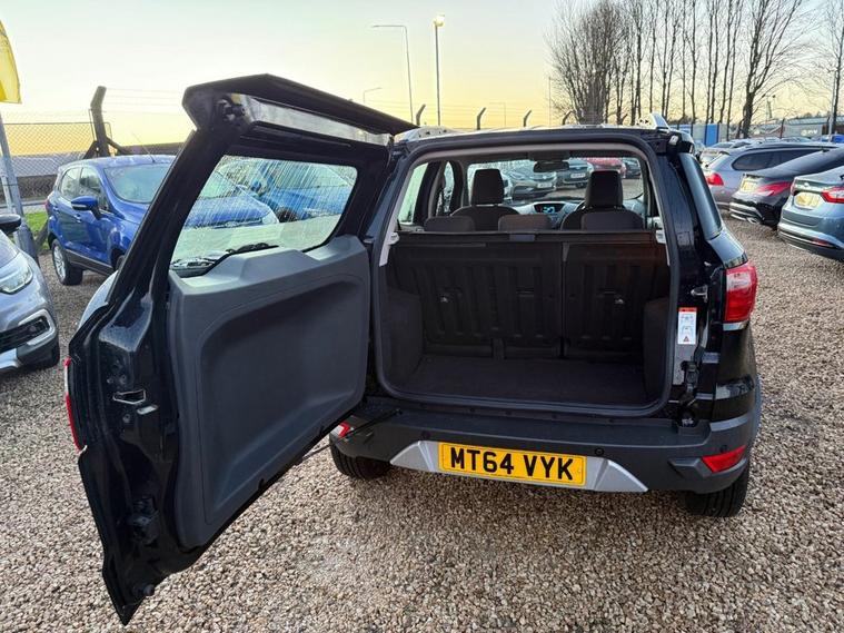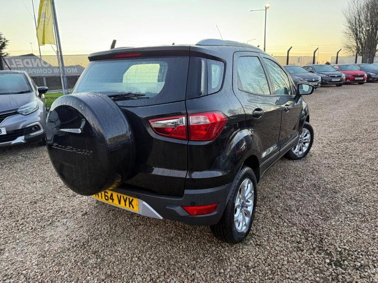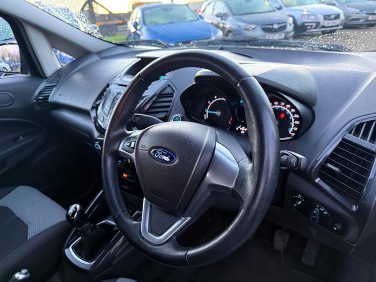 This 2014 Ford EcoSport 1.5 Titanium represents excellent value for anyone wanting a reliable, economical and well-equipped compact SUV. Finished in black and showing 99, 503 miles, it is powered by the 1.5L petrol engine producing 112PS, delivering smooth performance with impressive efficiency at 44.8 MPG combined. With its low Insurance Group 10 rating, its also cheaper to insure than many comparable SUVs. This vehicle comes with a standout customer package: a free 12 month parts and labour warranty, a brand new 12 month MOT, and a full service at point of sale, offering exceptional peace of mind and making this EcoSport one of the best-value Titanium models available. The Titanium trim level adds desirable comfort and convenience features, including Electronic Automatic Temperature Control (climate control), Ford Power starter button, USB and AUX connectivity, leather steering wheel with audio controls, MP3 radio, driver lumbar support, and rake/reach adjustable steering. Additional practicality comes from a cooled glovebox, slide-out under-seat drawer, rear seatback pockets, front and rear carpet mats, and multiple useful storage areas throughout the cabin. Exterior styling includes 16-inch alloy wheels, a chrome front grille, silver roof rails, and the signature rear-mounted spare wheel with protective cover. The EcoSport also offers strong safety specification with ABS, multiple airbags, TPMS, Deflation Detection System, Thatcham Category 1 alarm, and front and rear skid plates. For buyers looking for an economical, compact SUV with great spec, low running costs and outstanding purchase protection, this Ford EcoSport Titanium is an excellent choice.