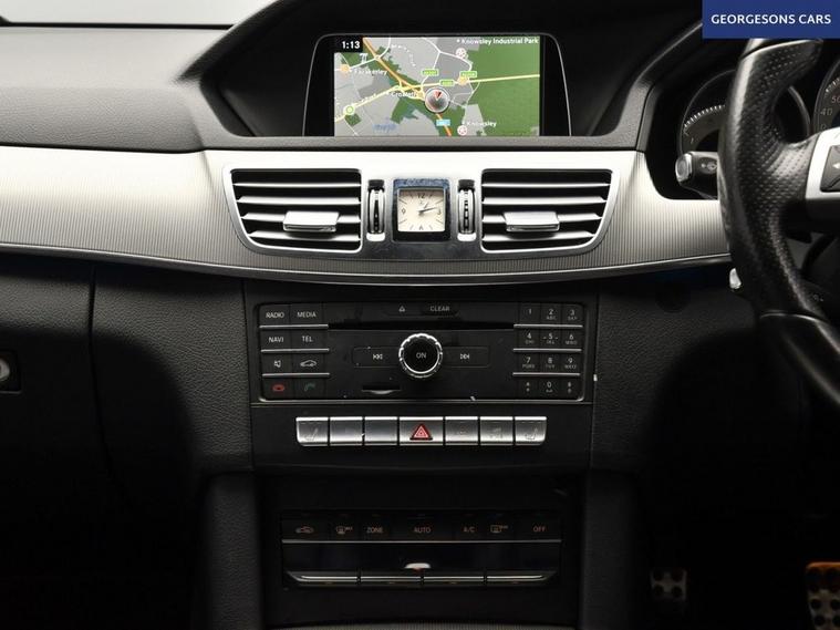 This Mercedes-Benz E220 BlueTEC AMG Night Edition combines a refined 2.1-litre turbo diesel power with 177hp, delivering 0-62mph in 8.4 seconds and up to 67.3mpg in this rear-wheel-drive setup with a silky 7-speed G-Tronic+ automatic. The AMG Night Edition is the flagship special-edition trim with a black exterior pack and premium interior. Stay connected with Bluetooth, DAB radio and satellite navigation. Parking is easy with front & rear parking sensors. Stay warm with heated front seats and dual-zone climate control. Cruise control with speed limiter, blind spot assist, selectable drive modes and partial electric seats deliver relaxed, safe grand touring every day. The spacious four-door saloon includes a 540-litre boot