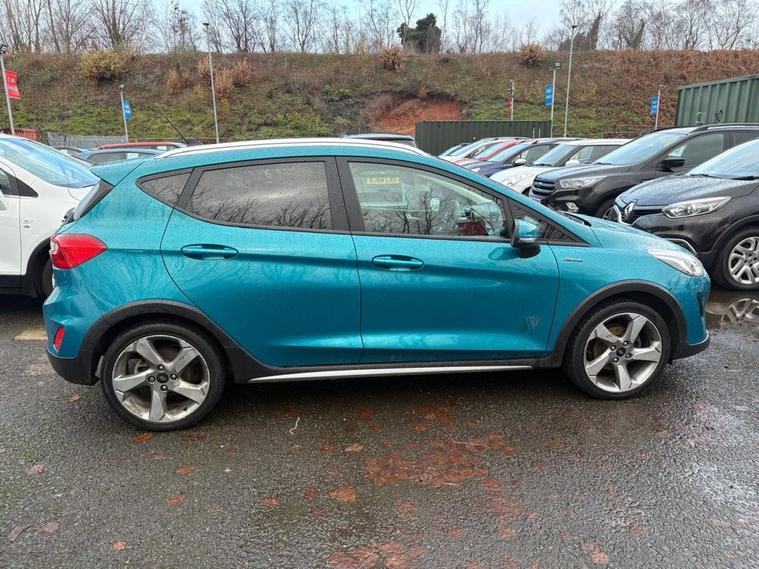Ford Fiesta Ecoboost Active X in metallic blue. Comes with sat navigation, 17 alloy wheels, air conditioning, electric windows in the front and rear, electric folding mirrors, keyless start, rear parking sensors, reversing camera, cruise control, half leather trim, heated seats, auto lights, rear privacy glass, heated front screen, stop/start engine, its a 6 speed, has apple car play, bluetooth, voice command, a touchscreen dab radio, usb port, multifunction steering wheel and 2 remote keys. THE CAR WILL HAVE A SERVICE AND 12 MONTHS MOT / PART EXCHANGE IS ALWAYS WELCOME / FREE 12 MONTH AA ROADSIDE RECOVERY INCLUDED / FINANCE IS AVAILABLE VIA OUR WEBSITE LINK / THE CAR HAS BEEN HPI AND MILEAGE CHECKED, ALL OK / WE ARE A FAMILY RUN BUSINESS AND HAVE BEEN TRADING FOR OVER 30 YEARS, WE OFFER DELIVERY IN MAINLAND UK (Please ask for details), WE ARE HERE TO HELP YOU! PLEASE CONTACT US WITH ANY QUESTIONS