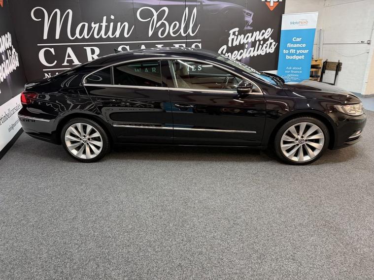 14 VW PASSAT 2.0 TDI CC GT COUPE BLUE-MOTION TECH DSG AUTO Finished in Deep black metallic with black leather .Local car genuine 33000 miles with service history new timing belt water pump and aux belt. Viewing and test drive essential comes with cruise climate heated seats privacy dab radio bluetooth media apple play parking sensors Please take the time to check our feedback & reviews .We have all the correct paperwork , handbooks & 2 keys.Everything in good working order drives without fault .Car will be sold with fresh service , full mot , warranty, 12 months AA cover, & HPI certificate.We welcome any inspection OUTRIGHT PRICE SALES LINE 01388306174 EMAIL info dealer's website WEB dealer's website