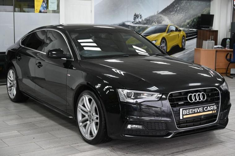DRIVE AWAY TODAY OR FREE HOME DELIVERY TO YOUR DOORSTEP FINANCE & PART EXCHANGE ARRANGED ONLINE** 7 DAY MONEY BACK GUARANTEE** Lovely Audi a5 3.0 tdi v6 s-line sportback s-tronic quattro in metallic mythos black with good service history sat nav audi multimedia dab radio bluetooth media full black s-line leather seats with armrest heated seats electric heated door mirrors front and rear parking aid sensors xenon lights flat bottom s-line steering wheel with f1 style paddleshifts alloys privacy