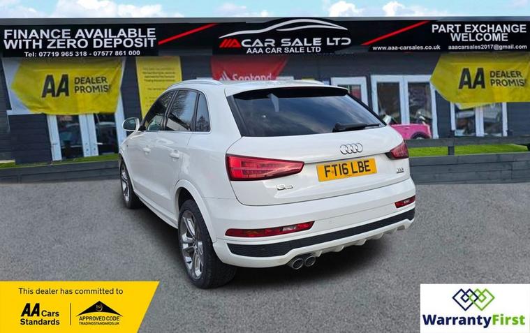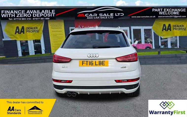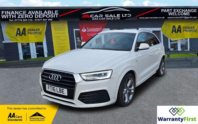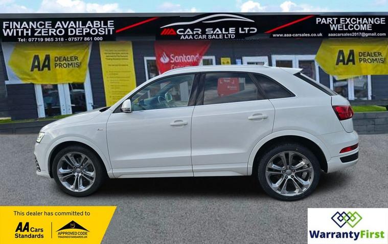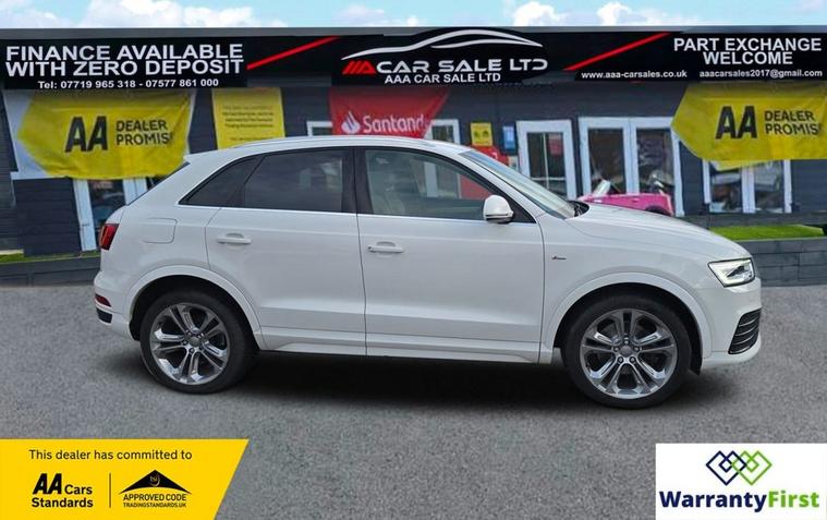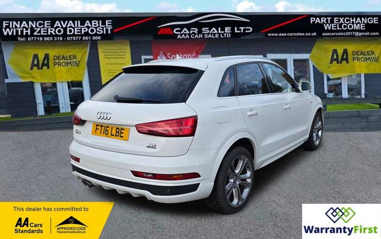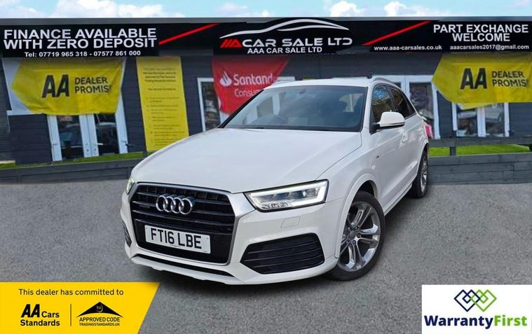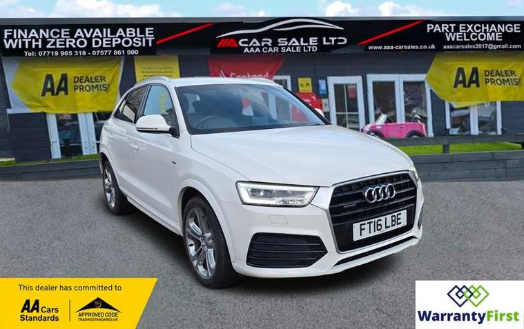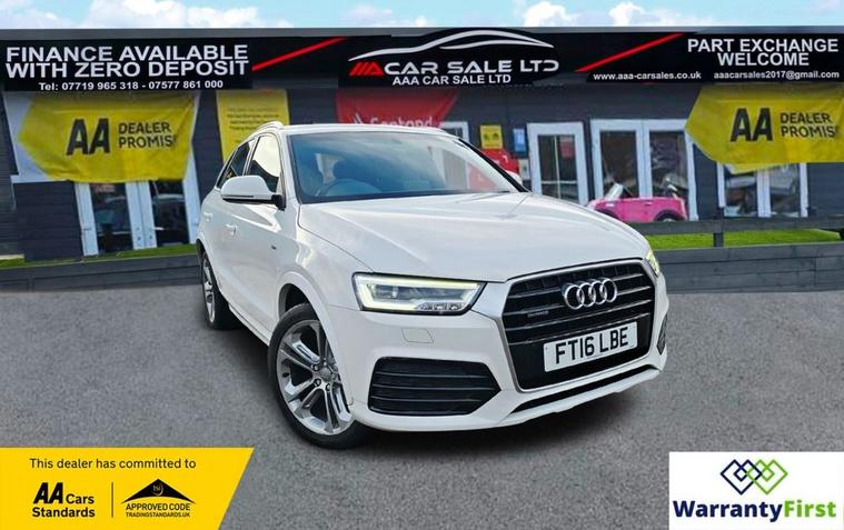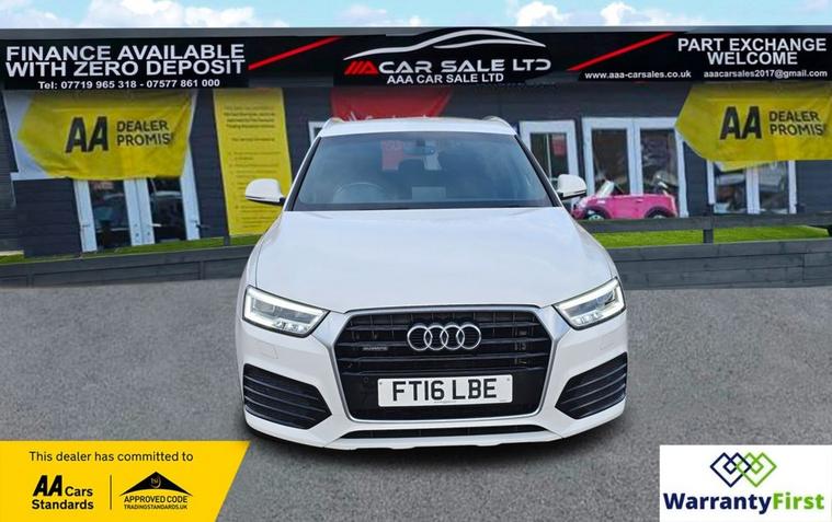 **AAA CAR SALES DARLINGTON LTD HAVE THE PLEASURE TO PRESENT THIS AUDI Q3 2.0 TDI S line Plus SUV 5dr Diesel S Tronic quattro Euro 6 (s/s) (150 ps) IN GLACIER WHITE PAINTWORK, SERVICE HISTORY - SERVICED AT 38K, 57K, 76K AND SERVICED BY US AT 87K. ** ALL OUR CARS GO THROUGH 72 POINT INSPECTION, ALL OF OUR CARS COME WITH 12 MONTHS AA BREAKDOWN COVER, UP TO 12 MONTH MOT WITHOUT ADVISORIES, INTERIM SERVICE, HPI CHECKED VIA EXPERIAN, 3 MONTHS WARRANTY WITH THE OPTION TO UPGRADE ***AUTOTRADER CUSTOMER SERVICE AWARD 2019, 2020, 2021, 2022, 2023 & 2024 YEAR ON YEAR***, WE ARE OPEN 7 DAYS A WEEK FOR YOUR CONVIENIENCE, CALL 01325950841 OR EMAIL US AT hello dealer's website or visit our website dealer's website YOU CAN BUY WITH FULL CONFIDENCE FROM AAA CARS CHECK OUR AUTOTRADER REVIEWS FOR FULL PEACE OF MIND,