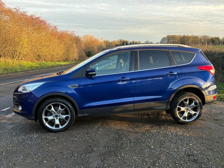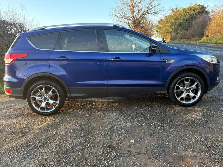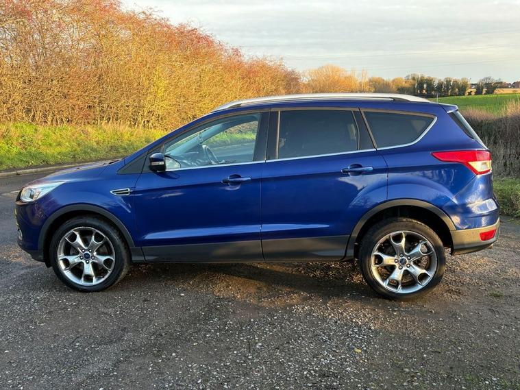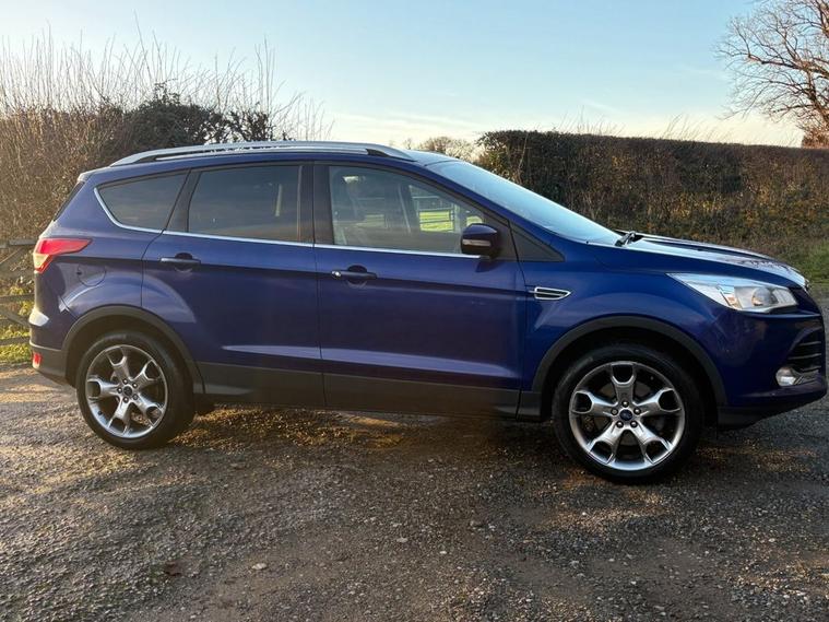 RS MOTOR SALES ARE VERY PLEASED TO OFFER THIS NICE TOP SPEC EXAMPLE WITH GOOD SERVICE HISTORY. LOOKS AND DRIVES EXCELLENT, SPEC INCLUDES DEEP IMPACT BLUE PAINT, TITANIUM APPEARANCE PACK INC UPGRADE ALLOYS, FORD QUICK CLEAR HEATED WINDSCREEN, 1/ LEATHER UPHOLSTERY, CRUISE CONTROL, PRIVACY GLASS, BLUETOOTH AUDIO, BLUETOOTH HANDS FREE, TWIN ZONE CLIMATE CONTROL, ELECTRIC WINDOWS ALL ROUND, ELECTRICALLY OPERATED HEATED MIRRORS PLUS MUCH MORE. VIEWING ESSENTIAL. LOW FINANCE AND PART EXCHANGE AVAILABLE. ANY INSPECTION AA/RAC WELCOME. This 2015 Ford Kuga TDCi Titanium presents a remarkable opportunity with its exceptionally low mileage of just 80, 308 miles for its age. This well appointed SUV features a robust 2.0L diesel engine, meeting the Euro 6 emission standards, making it a more environmentally conscious choice. Inside, youll find comfort and convenience with dual zone electronic automatic climate control and the ease of Bluetooth hands free phone connectivity. The Titanium trim ensures a high level of specification, and the automatic headlights add to the effortless driving experience. The fuel economy of this Kuga is a standout feature, achieving an impressive 60 miles per gallon, which is significantly better than many comparable vehicles. This excellent fuel efficiency, combined with its low CO2 emissions, means you can enjoy your journeys while being mindful of running costs and environmental impact. This Ford Kuga TDCi Titanium offers a compelling blend of practicality, economy, and comfort for everyday driving.