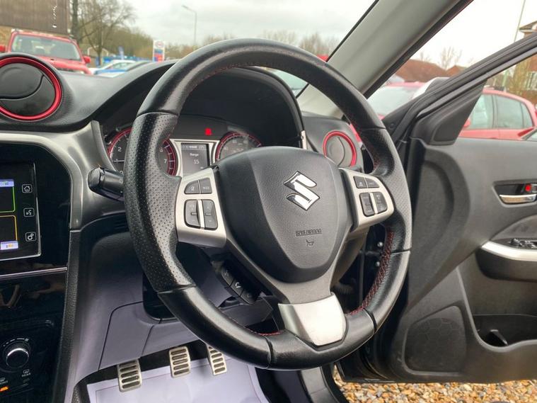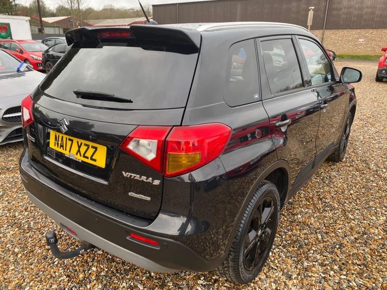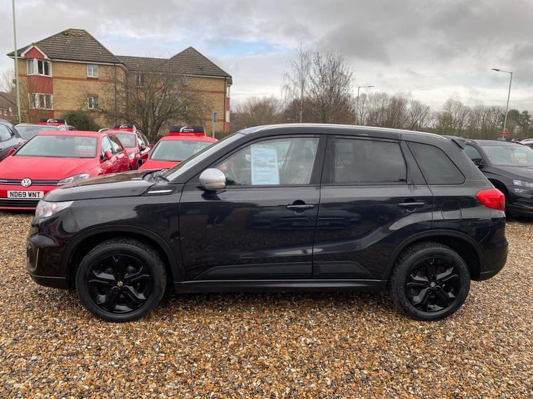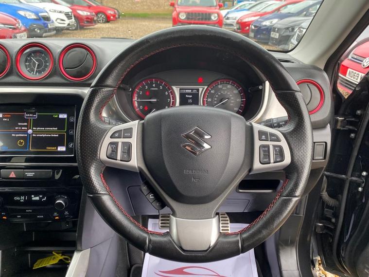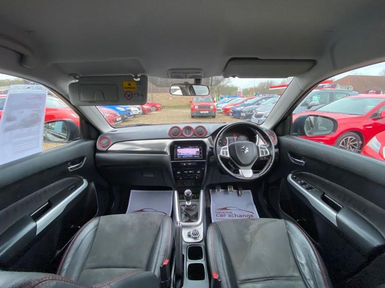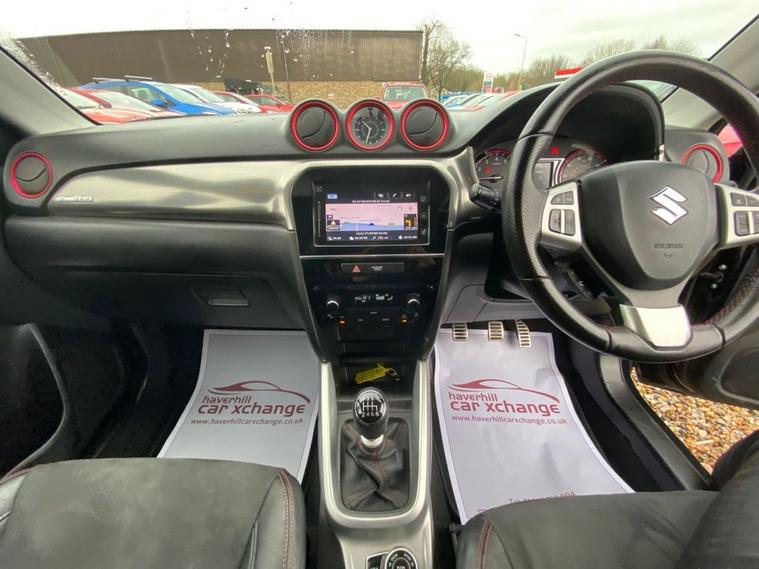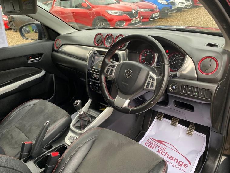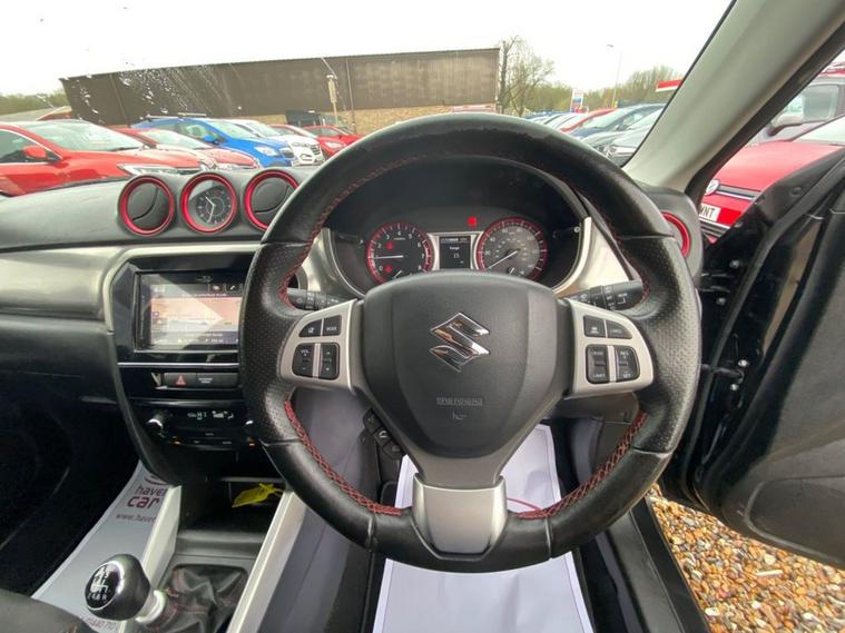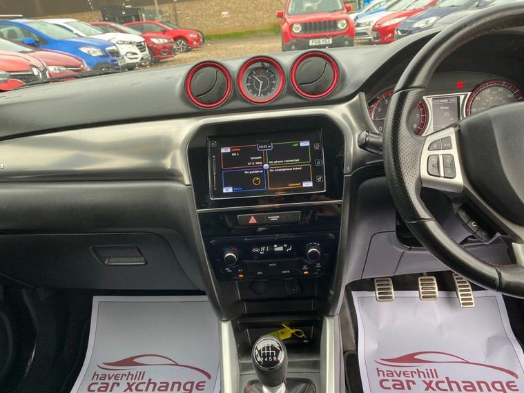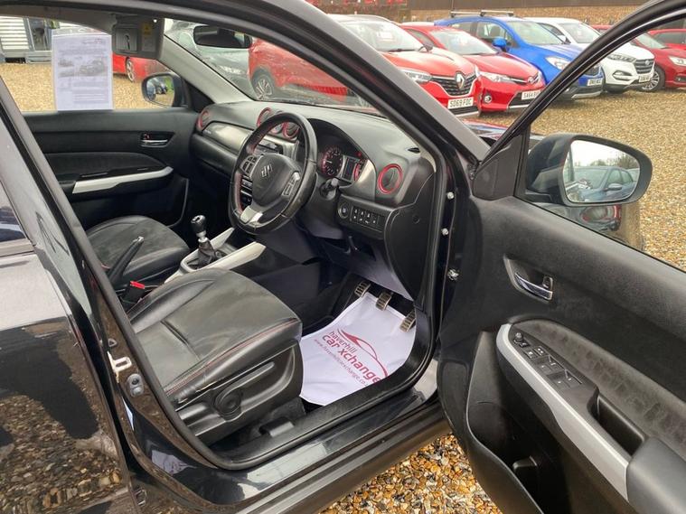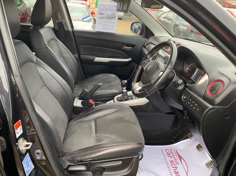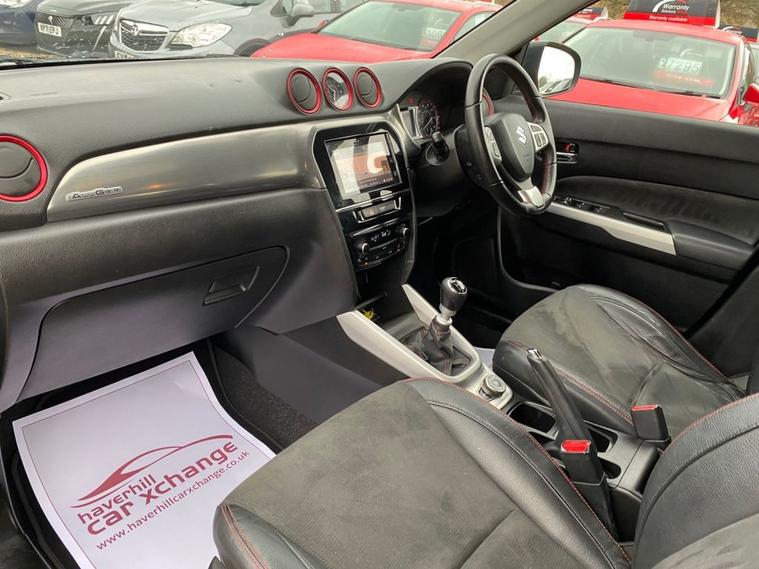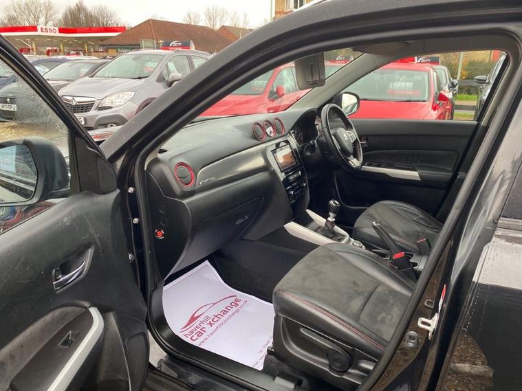 SATELLITE NAVIGATION SYSTEM+DAB DIGITAL RADIO+BLUETOOTH+AUTOMATIC AIR-CONDITIONING+HALF LEATHER UPHOLSTERY+AUTOMATIC HEADLIGHT ACTIVATION+RAIN-SENSING WINDSCREEN WIPERS+FRONT & REAR PARKING ASSISTANCE+TOWBAR+COSMIC BLACK PEARL PAINT+17 INCH ALLOY WHEELS. At Haverhill Car Xchange we would like to offer you our Suzuki Vitara S SUV which has been finished in a Cosmic Black Pearl paint with Black half leather and suede upholstery. Specification Includes Satellite Navigation, DAB Digital Radio, Bluetooth, USB Connector, 12 Volt Accessory Socket in Front and Rear, Automatic Air-Conditioning, Adaptive Cruise Control, Electric Front and Rear Windows, Body Coloured Bumpers with Chrome Front Grille, Body Coloured Door Handles/Rear Roof Spoiler, Satin Silver Door Mirrors with Integrated Side Indicators, Front and Rear Silver Skid Plates, Automatic Headlight Activation, LED Daytime Running Lights, Front Fog Lights, Rain-Sensing Windscreen Wipers, Front and Rear Parking Assistance, Multifunction Steering Wheel, Rear Privacy Glass, 17 Inch Alloy Wheels, Keyless Entry/Start, Towbar, Power Steering, Hill Hold Control, ABS Breaking System, Airbags, Alarm, Immobiliser, Remote Central Locking and ISOFIX Anchorage Points for Child Seats.