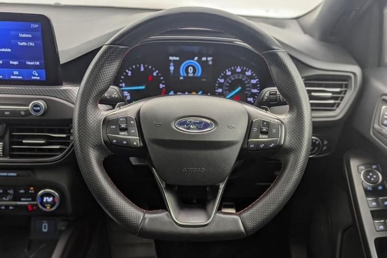 Henson Car Store presents the FORD FOCUS 1.5 EcoBlue ST-Line X Hatchback 5dr Diesel Auto Euro 6 (s/s) finished in Black, this car comes with service history. Discover this 2020 Ford Focus ST-Line X, a stylish and well equipped hatchback. Powered by an efficient 1.5 litre diesel engine, this Euro 6 compliant model offers a great blend of performance and economy. Inside, youll find comfort and convenience with DEATC dual zone electronic automatic temperature control, ensuring everyone enjoys their ideal climate. For those chilly mornings, the heated front seats provide welcome warmth. Stay connected and entertained with the Ford SYNC3 DAB navigation system, which seamlessly integrates with both Android Auto and Apple CarPlay, allowing for easy access to your favourite apps and music via Bluetooth. Navigating tight spaces is made simple thanks to the front and rear parking sensors, offering peace of mind when parking. This Focus ST-Line X stands out with its comprehensive feature set, designed to enhance your driving experience.