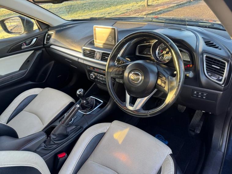 Stunning Mazda 3 2.0 Skyactiv-G Sport Nav In Dep Crystal Blue Finished With Cream And Black Full Leather Interior - Low Running And Maintenance Costs With The Likes Of £35 Road Tax And Up To 65 MPG - Car Has Been Well Looked After And Cared For And Benefits From A Full Service History - LEZ Compliant - Full Specd Model With The Likes Of Touch Screen 7 Colour TFT - Satellite Navigation System - Combined Bluetooth Phone & Audio Systems - AM/FM Radio CD Player - USB & AUX Connectivity - Front & Rear Parking Sensors - Front Heated Seats - Air Conditioning - Cruise Control With Speed Limiter - LED Daytime Running Lights - Hill Hold Assist - Premium BOSE Centrepoint Surround System - Daytime Running Lights - 18 Alloy Wheels And Much Much More - Car Comes Fully Serviced With Long MOT To 09/26 - 2 Keys Present - 1 Months Parts & Labour Warranty Included - Call & Secure This Car Today With A Low Deposit Of £95