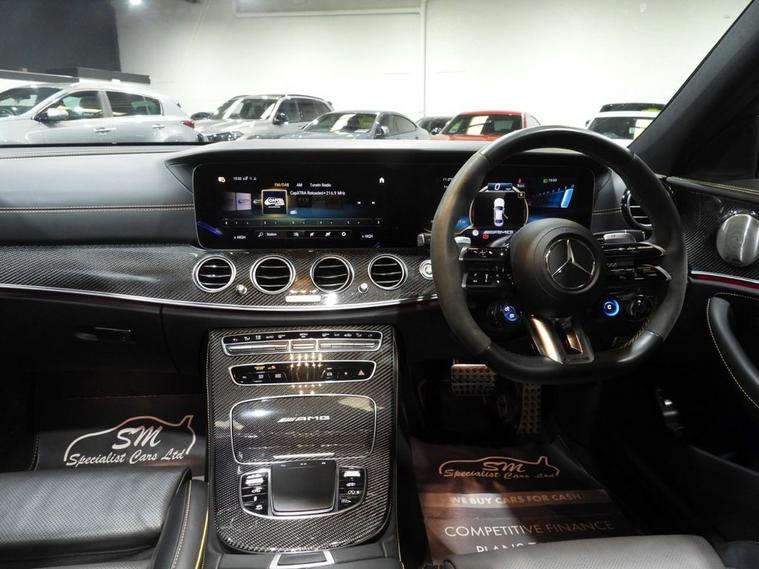 This 2023 Mercedes-Benz E Class E63 V8 BiTurbo AMG S Final Edition boasts exceptionally low mileage for its age, having covered just 13, 000 miles, and comes with a clear vehicle history check. This impressive saloon features a powerful 4.0 litre V8 BiTurbo petrol engine paired with a four wheel drive system, meeting Euro 6 emissions standards. Notable features include a comprehensive Parking Package with a 360-degree camera and parking assistance sensors, Blind Spot Assist for enhanced safety, and the convenience of KEYLESS-GO Entry and Starting Function. Inside, youll find seamless Smartphone Integration with Android Auto and Apple CarPlay, alongside a central stowage compartment with a 12V socket and wireless phone charging. The performance of this AMG S Final Edition is truly remarkable, with a rapid 0-60mph acceleration time of just 3.4 seconds, demonstrating its superior capability compared to other vehicles in its class. This exceptional acceleration is a testament to the finely tuned V8 BiTurbo engine and advanced drivetrain. Furthermore, the E Class offers a generous boot space, making it a practical choice for everyday use and longer journeys alike, without compromising on its exhilarating driving experience.