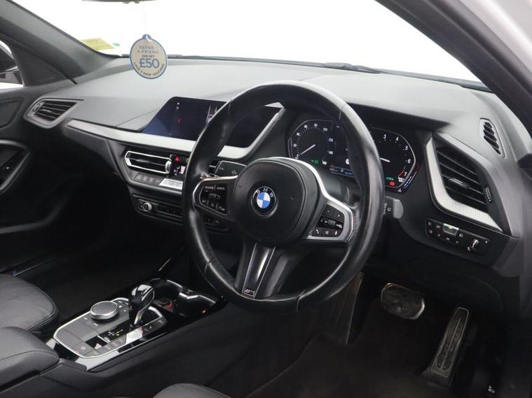 This 2020 BMW 1 Series 118i M Sport boasts exceptionally low mileage for its age, having covered just 27, 044 miles. This Euro 6 compliant model features a responsive 1.5 litre petrol engine paired with a smooth dual-clutch automatic transmission. Inside, youll find the M Sport trim enhanced by perforated Dakota leather upholstery in black with a stylish grey highlight. For your convenience, it includes a rain sensor with automatic headlight activation and seat heating for both the driver and front passenger. The Connected Package Plus ensures you stay connected, offering features like Apple CarPlay. The M Sport variant of this BMW 1 Series offers a compelling driving experience, highlighted by its brisk 0-60mph acceleration in just 8.5 seconds, demonstrating its performance advantage over many similar vehicles. This particular model also offers generous boot space, making it practical for everyday use and longer journeys. With its long MOT, this well maintained vehicle provides peace of mind and is ready for its next owner.