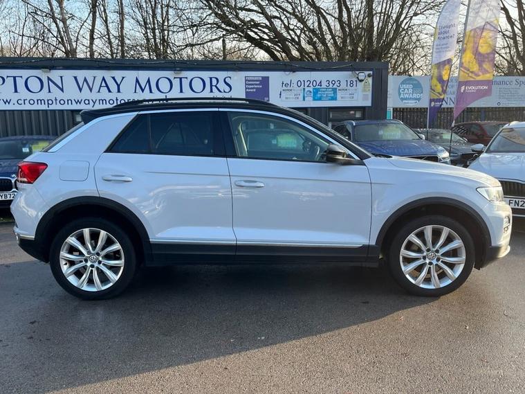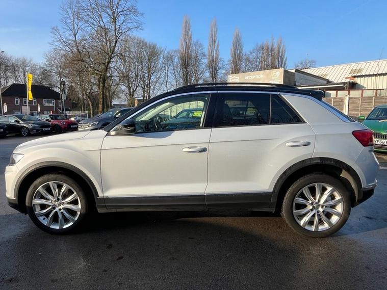 This 2018 Volkswagen T-Roc TSI EVO Design is presented with a clear vehicle history check and benefits from a recent service at 65, 068 miles, ensuring its provenance is in excellent order. This stylish SUV features a 1.5 litre Euro 6 compliant petrol engine, offering a compelling blend of performance and efficiency. The Design trim level comes equipped with a desirable panoramic sunroof, allowing natural light to flood the cabin, and striking 18 inch Arlo Sterling Silver alloy wheels. For enhanced visibility and convenience, it includes halogen clear headlights with LED daytime running lights and automatic activation, complemented by a dusk sensor. Inside, you can seamlessly connect your smartphone using Car-Net App-Connect, supporting both Android Auto and Apple CarPlay. A 6 month warranty and 12 months MOT are provided for your peace of mind. The highlights of this Volkswagen T-Roc demonstrate its superior appeal compared to other vehicles in its class. It achieves an impressive fuel economy of 53 miles per gallon, making it an economical choice for everyday driving. Furthermore, its low CO2 emissions and low insurance group rating contribute to lower running costs. Performance is also a strong point, with a brisk 0-60mph acceleration time of just 8.4 seconds, indicating a responsive and engaging driving experience.
