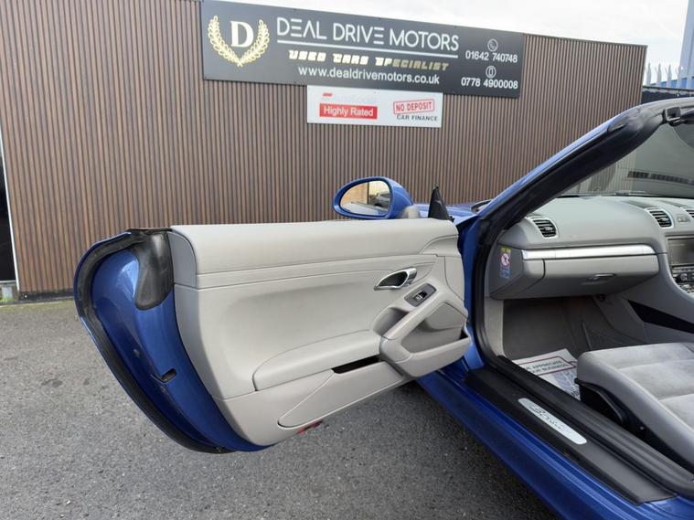 2014 Porsche Boxster 2.7 981 Manual 265 PS Available now at DealDrive Motors. The Porsche Boxster 981 is a pure drivers sports car, offering exceptional balance, precision, and open-top excitement. Powered by a naturally aspirated 2.7-litre petrol engine producing 265 PS, it delivers thrilling performance with 060 mph in just 5.8 seconds, paired with a 6-speed manual gearbox for maximum driver engagement. Fully Euro 6 / ULEZ compliant, it combines performance with modern usability. With its mid-engine layout, the Boxster offers superb handling and cornering confidence, making every drive rewarding whether on winding roads or open motorways. The lightweight chassis, responsive steering, and distinctive flat-six soundtrack create a driving experience few rivals can match. Inside, the cabin is driver-focused and well finished, offering supportive sports seats, intuitive controls, and a premium feel throughout. With the roof down, the Boxster delivers a truly immersive sports car experience; with the roof up, it remains refined and comfortable for everyday use. Presented in excellent condition and HPI clear, this Porsche Boxster represents an outstanding opportunity to own one of the most engaging sports convertibles of its generation. Ownership Highlights: Power: 265 PS 060 mph: 5.8 sec Transmission: Manual | Petrol Layout: Mid-Engine RWD Emissions: Euro 6 | ULEZ Compliant Character: Lightweight | Driver-Focused | Open-Top History: HPI Clear