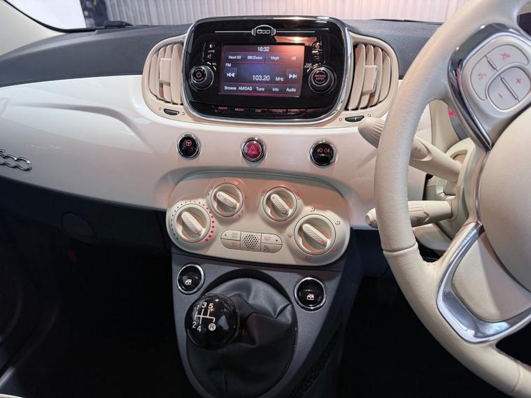 **THIS VEHICLE MAY BE AT OUR 150-CAR STORAGE FACILITY. PLEASE CALL AHEAD TO ARRANGE VIEWING AT OUR WINCHESTER SALES SITE** MOT November 2026. Fiat 500 1.2 Lounge Hatchback first registered March 2018 (18 plate) Finished in Bossa Nova White with an Ivory cloth interior and 15 inch alloy wheels. Spec includes Bluetooth connectivity | FM and DAB radio | City driving mode | Cruise control with speed limiter | fixed glass roof with blind | Parking sensors. Serviced at: 12k miles | 19k miles.