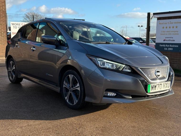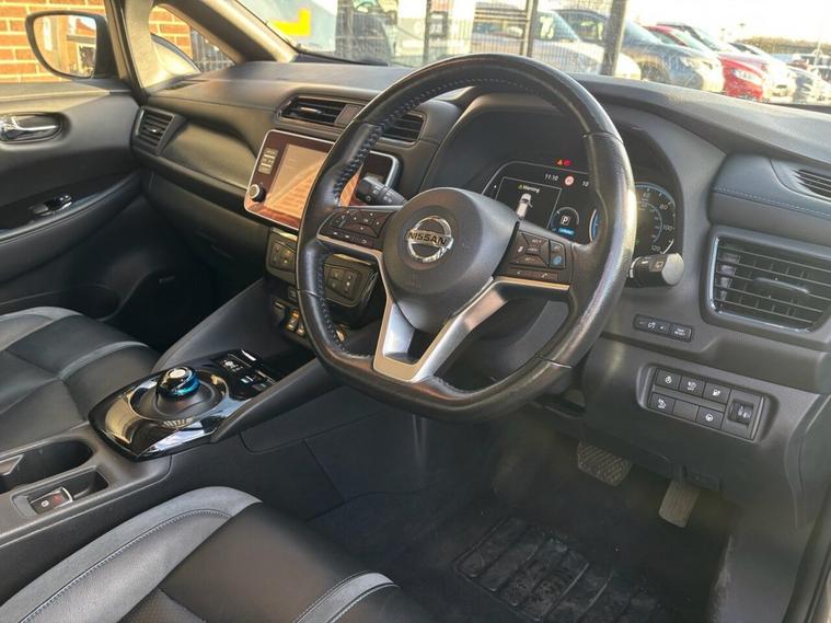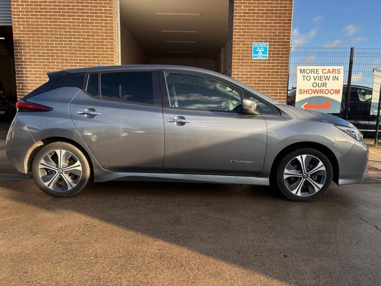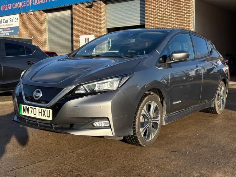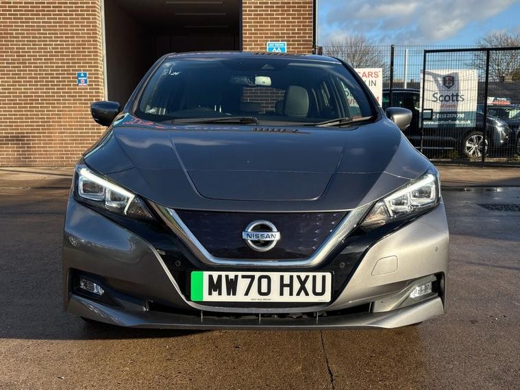 Scotts of Leeds used Car Sales are pleased to offer this NISSAN LEAF 40kWh Tekna Hatchback 5 Door Electric Automatic in Grey. The car is in good condition throughout, in a lovely colour combination and a great specification including Satellite Navigation, adaptive cruise control, Speed limiter, Bose sound, DAB radio, Bluetooth, apple carplay, AUX and USB, Full leather Heated seats, Heated steering wheel, 360 reverse camera, Front and Rear parking sensors, automatic lights and wipers, alloy wheels, isofix, Keyless entry, Pushbutton start, and much much more. The car will be supplied with an up to date service record including 5 services, an MOT until November 2026 and 2 Keys ready to drive away. 3 MONTH NATIONWIDE WARRANTY provided with all vehicles. NATIONWIDE DELIVERY also available. A guaranteed 12 Months MOT can be added for an extra £100. DISCLAIMER: The above specification is true and correct. Any other specification listed elsewhere can sometimes be incorrect. Please check with Sales Executive to clarify this if needed prior to purchase.