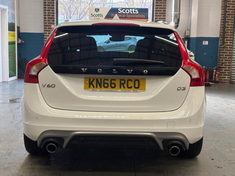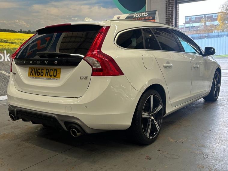 Scotts of Leeds used Car Sales are pleased to offer this VOLVO V60 2.0 D3 R-Design Lux Nav Estate 5 Door Diesel Automatic in White. The car is in good condition throughout, in the best colour combination and a great specification including Satellite Navigation, Cruse control, Speed limiter, DAB radio, Bluetooth, AUX and USB, Front and Rear parking sensors, automatic lights, alloy wheels, privacy glass, CD player, Full leather seats, and much much more. 1 Former Keeper supplied with an up to date service record having just been serviced in our workshop, an MOT until September 2026 and 2 Keys ready to drive away. £35 Road Tax and great MPG. A guaranteed 12 Months MOT can be added for an extra £100. DISCLAIMER: The above specification is true and correct. Any other specification listed elsewhere can sometimes be incorrect. Please check with Sales Executive to clarify this if needed prior to purchase.