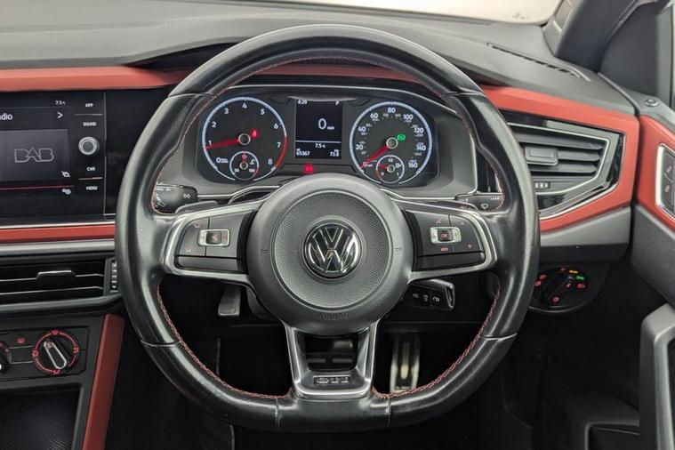Henson Car Store presents the VOLKSWAGEN POLO 2.0 TSI GPF GTI Hatchback 5dr Petrol DSG Euro 6 (s/s) finished in White, this car is VAT qualifying. This 2019 Volkswagen Polo TSI GTI is a superb example, having had only one owner since new. It boasts a powerful 2.0 litre petrol engine, meeting Euro 6 emission standards, and comes in the sporty GTI trim. Youll appreciate the convenience of Car Net App Connect, which seamlessly integrates your Android Auto or Apple CarPlay, and the Composition Media System with Bluetooth for easy connectivity. Navigating tight spots is made simple with front and rear parking sensors, further enhanced by the parking assistance features. For your comfort, it includes manual air conditioning, and the Halogen Clear Headlights with automatic activation and separate daytime running lights ensure excellent visibility. Experience the exhilarating performance of this Polo GTI, with its impressive 0-60mph acceleration in just 6.7 seconds. This quick acceleration demonstrates how this vehicle offers a more dynamic driving experience compared to many other cars in its class. The combination of its spirited engine, advanced connectivity, and practical parking aids makes this Volkswagen Polo TSI GTI a truly desirable and capable hatchback.