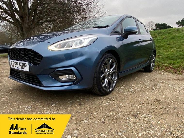 Boasting exceptionally low mileage for its age, this 2020 Ford Fiesta T ST Line presents a superb opportunity. This Euro 6 compliant model features a 1.0L petrol engine and comes with a full service history, offering peace of mind. Its ST Line trim ensures a sporty aesthetic and feel, complemented by a very low mileage of just 30, 000 miles. This Fiesta is equipped with a NCAP Pack, including automatic headlights for enhanced visibility. Inside, youll find manual air conditioning to keep you comfortable, and the Ford SYNC system with a touchscreen offers DAB radio, Apple CarPlay, and Android Auto for seamless connectivity. The vehicles low CO2 emissions are a notable advantage, and its brisk 0-60mph acceleration in 10.0 seconds indicates a responsive driving experience, setting it apart from many other vehicles in its class.