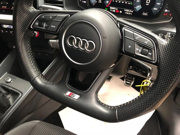 - 3-Spoke Leather Multi-Function Steering Wheel - S Badging and Grips in Perforated Leather with Contrast Stitching