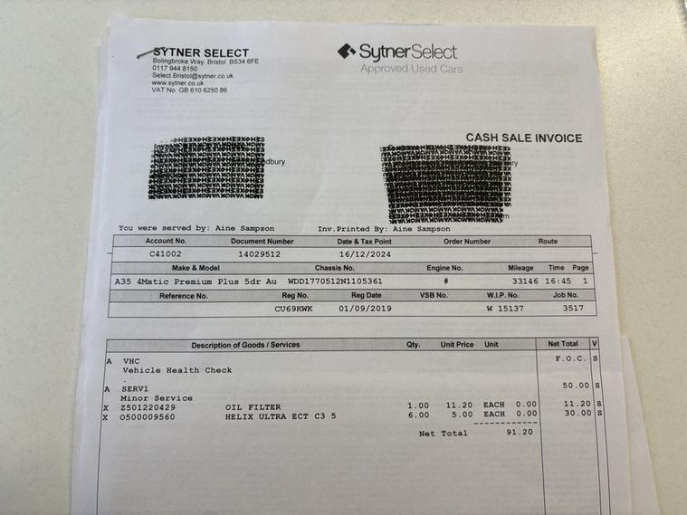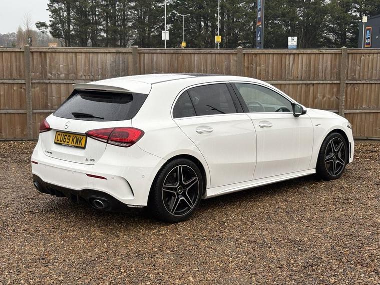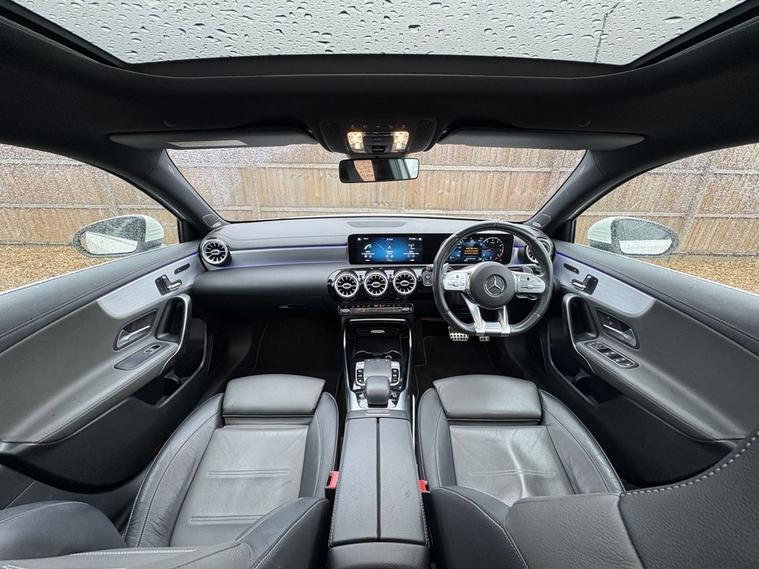 This 2019 Mercedes-Benz A Class A35 AMG is a standout example with exceptionally low mileage for its age, having covered just 40, 685 miles. This Euro 6 compliant, four wheel drive model boasts a powerful 2.0L petrol engine and comes with a clear vehicle history check. The AMG trim is enhanced by the Premium Plus package, which includes a panoramic sunroof, heated front seats with memory function, and LED high performance headlamps with integrated daytime running lights. For convenience, it features THERMOTRONIC luxury automatic climate control, a dual Bluetooth interface with two USB Type C ports, and parking assistance sensors for both front and rear. Experience exhilarating performance with this A35 AMG, capable of accelerating from 0-60mph in a swift 4.7 seconds. This impressive acceleration, combined with its comprehensive feature set including automatic headlamp activation and a branded sound system, demonstrates a superior driving experience compared to other vehicles in its class. The inclusion of keyless entry further adds to the premium feel of this well appointed Mercedes-Benz.