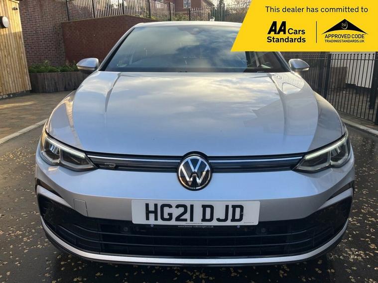 Experience the perfect blend of sporty style, efficiency and premium tech with this stunning 2021 Volkswagen Golf. This hatchback comes with a 4 stamped services last done in June 2025 and a fresh 12-month MOT, giving you complete peace of mind from the moment you drive away. Finished with striking R-Line styling and 17 alloy wheels, this Golf drives beautifully thanks to its smooth 1.5 litre mild-hybrid petrol engine paired with a 7-speed DSG automatic gearbox, delivering both performance and excellent fuel economy. Step inside to enjoy a wealth of modern features including App-Connect with Apple CarPlay & Android Auto, Discover Navigation infotainment, wireless smartphone charging and multiple USB-C ports for effortless connectivity on the go. Comfort and convenience are assured with heated multifunction leather steering wheel, automatic lights and wipers, keyless start, adaptive cruise control, climate control and a host of thoughtful storage solutions. Safety is comprehensive with front and rear parking sensors, adaptive cruise control and advanced airbag systems. Practical touches such as split folding rear seats, adjustable boot floor, ambient lighting and predictive pedestrian protection make this Golf as versatile as it is stylish the ideal choice for daily driving and weekend adventures alike.