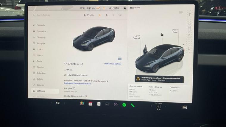 **96.3% BATTERY SOH** This 2024 Tesla Model 3 presents an exceptional ownership proposition with its remarkably low mileage of just 7735 miles, a testament to its careful use by its single owner. As a fully electric vehicle, it offers a substantial battery capacity of 62 kWh, providing a maximum range of 344 miles when new. Charging is convenient, with a full charge at home using a 7kW charger taking approximately 8 hours, while rapid charging to 80% on a public charger can be achieved in as little as 29 minutes. This Model 3 is equipped with advanced safety features including Blind Spot Collision Warning Chime with Blind Spot Assistance, and for your comfort, it boasts Air Conditioning with 2 Zone Climate Control. Connectivity is seamless thanks to Bluetooth, and you can keep your smartphones powered up with the two Inductive Charging Mats. The highlights of this Tesla Model 3 truly set it apart. Its impressive battery range of 344 miles means fewer stops on longer journeys compared to many other electric vehicles. Furthermore, the generous boot space offers practicality for all your needs, from weekly shopping to holiday luggage. These advantages, combined with the vehicles near new condition and single owner provenance, make this Model 3 a compelling choice for those seeking an efficient and well equipped electric car.