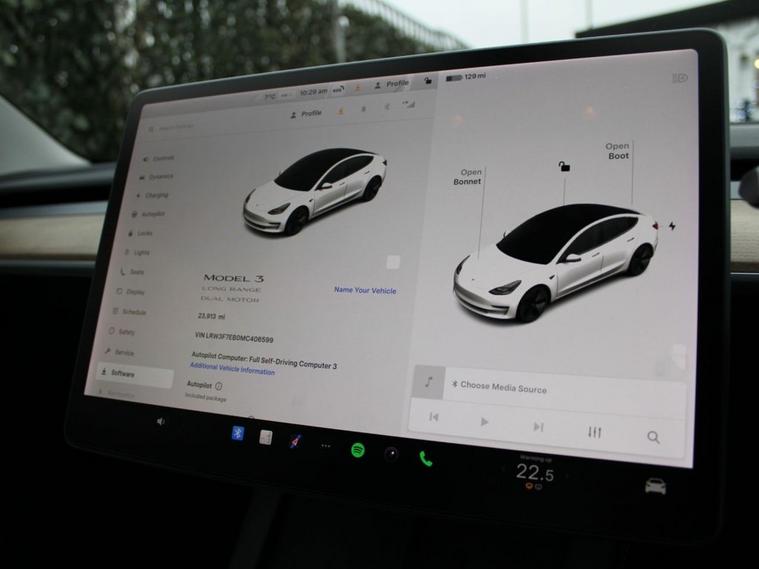 **93.8% BATTERY SOH** This 2021 Tesla Model 3 Long Range presents an exceptional ownership proposition, having been driven only 23, 816 miles by its sole owner. As a fully electric vehicle, it boasts a substantial 78 kWh battery, offering an impressive maximum range of 360 miles when new. This Four Wheel Drive model combines advanced electric technology with practicality, featuring ample boot space for all your needs. Charging is convenient, with a full charge at home taking approximately 12 hours using a 7kW charger, and rapid public charging can replenish the battery from empty to 80% in as little as 26 minutes. The performance of this Model 3 Long Range is truly remarkable, accelerating from 0 to 60 miles per hour in a mere 4.2 seconds, a figure that sets it apart from many other vehicles in its class. This rapid acceleration, combined with its extensive electric range and low mileage, signifies a vehicle that has been both cherished and efficiently used. The combination of its electric powertrain, impressive range, and dynamic capabilities makes this Tesla Model 3 a compelling choice for those seeking a modern, efficient, and exhilarating driving experience.