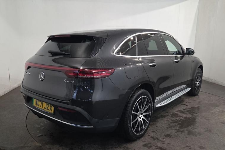 This 2021 Mercedes Benz EQC 400 AMG Line presents an exceptional opportunity with its remarkably low mileage of just 21, 569 miles and having had only one owner. As an all electric, four wheel drive vehicle, it offers a sophisticated driving experience. The EQC 400 AMG Line boasts a substantial 88 kWh battery, providing a maximum range of 245 miles when new. Charging is convenient, with a full charge at home taking approximately 12 hours and 13 minutes using a 7kW charger, while rapid public charging can replenish the battery from empty to 80% in as little as 45 minutes. Experience the impressive performance of this EQC, with its swift 0-60mph acceleration in just 5.1 seconds, demonstrating its dynamic capability. This model is equipped with the premium Mercedes Benz Sound System, ensuring an immersive audio experience. Safety and convenience are enhanced by Blind Spot Assist and MULTIBEAM LED Headlights, providing excellent visibility and awareness. For comfort, enjoy Heated Front Seats, and effortless manoeuvring is made possible by the Parking Package, which includes Parking Assist PARKTRONIC and a Rear Camera. Furthermore, the generous boot space offers practicality for all your needs, making this EQC a standout choice.