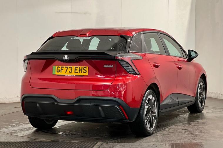 This 2023 MG MG4 SE is a clear vehicle history example, offering an excellent entry into electric motoring. This electric hatchback boasts a 51 kWh battery, providing a maximum range of 218 miles when new. Charging is convenient, with a full charge at home taking approximately 8 hours and 20 minutes using a 7kW charger, while rapid public charging can take you from empty to 80% in just 44 minutes. The SE trim level includes Adaptive Cruise Control, Apple CarPlay, Climate Control, rear parking sensors, and projector LED headlights, ensuring a comfortable and connected driving experience. The MG4 SE stands out with its generous boot space, making it a practical choice for everyday use and longer journeys. Its electric powertrain offers a smooth and quiet ride, complemented by the advanced features designed to enhance your driving pleasure and safety. Compared to other vehicles in its class, the MG4 SE provides a compelling combination of range, charging speed, and modern technology, all wrapped in a stylish and functional package.