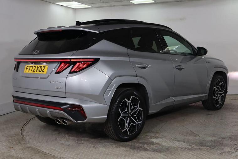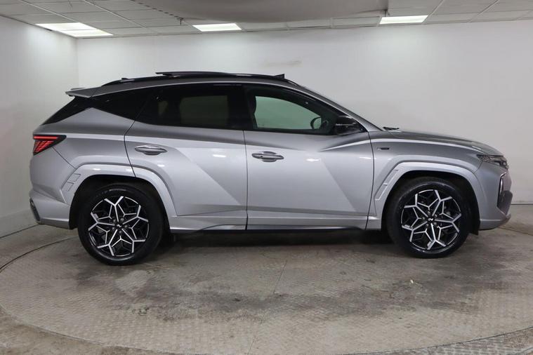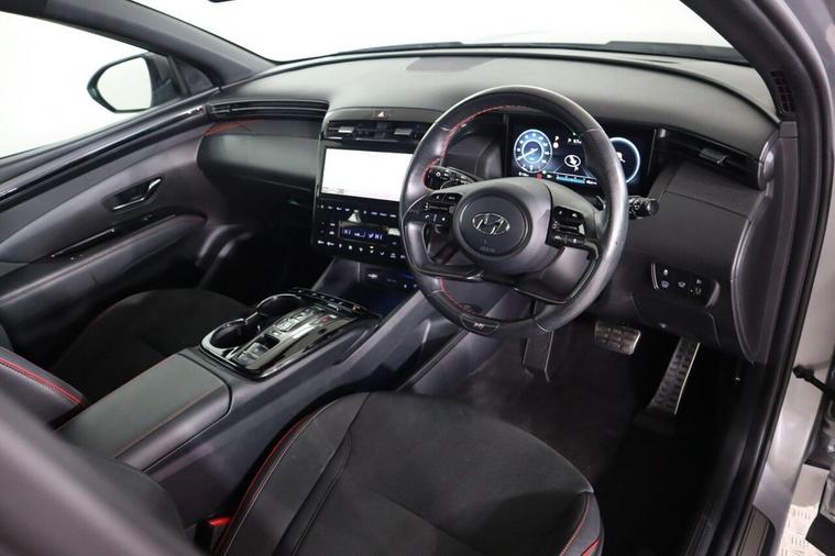 This 2022 Hyundai TUCSON h T-GDi N Line S is a superb example, having had only one owner since new. This stylish SUV boasts a 1.6 litre petrol hybrid engine, meeting Euro 6 emission standards. Inside, you'll find comfort and convenience with three zone climate control, a heated steering wheel, and a wireless phone charging pad. The N Line S trim also features LED headlights with static bending light and automatic activation with a dusk sensor, ensuring excellent visibility in all conditions. Experience impressive performance with this TUCSON, accelerating from 0 to 62mph in just 8.0 seconds, a highlight that shows how this vehicle offers a more dynamic drive than many others. Its large boot space provides ample room for all your luggage or shopping, making it a practical choice for families and adventurers alike. Furthermore, this model benefits from a low insurance group, which can help to keep your running costs down, making it an even more appealing option.