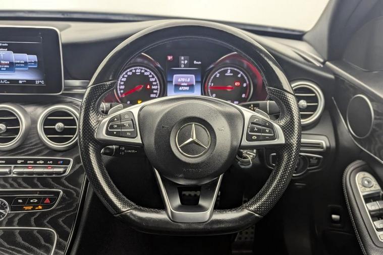 Henson Car Store presents the MERCEDES-BENZ C-CLASS 2.1 C220d AMG Line Saloon 4dr Diesel G-Tronic+ Euro 6 (s/s), this car comes with service history and is VAT qualifying. This 2018 Mercedes Benz C Class C220d AMG Line boasts a single owner from new, offering excellent provenance. Finished in the desirable AMG Line trim, this 2.1L diesel model is Euro 6 compliant. It comes equipped with a reversing camera for easier parking, THERMATIC automatic climate control for personalised comfort, and LED High Performance headlamps with integrated daytime running lights for enhanced visibility. Enjoy seamless connectivity with the Bluetooth interface for hands free calls, and experience added comfort with the heated front seats. This C220d AMG Line offers impressive efficiency, achieving a remarkable 61 mpg, which is better than many similar vehicles. Its low CO2 emissions and low insurance group also contribute to lower running costs. Performance is equally strong, with a swift 0-60mph acceleration time of just 7.5 seconds, demonstrating its capability compared to other cars in its class.