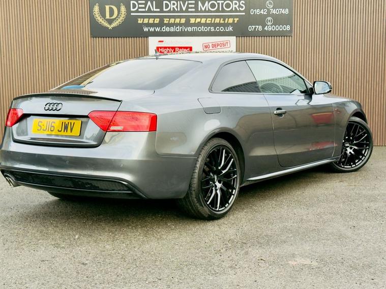 2016 Audi A5 2.0 TDI Black Edition Plus Coupe Multitronic 190 PS Available now at DealDrive Motors. The Audi A5 Black Edition Plus delivers sharp coupe styling, strong performance, and premium refinement. Powered by a 2.0-litre diesel engine producing 190 PS, it offers confident acceleration and smooth cruising, while remaining efficient and fully Euro 6 / ULEZ compliant. This example benefits from striking visual upgrades, including an RS5-style honeycomb front grille and gloss black alloy wheels, giving the car a more aggressive and modern road presence. The Black Edition Plus specification enhances the sporty character with distinctive exterior detailing and a high-quality, driver-focused cabin. Inside, the A5 offers excellent comfort and technology, featuring heated front seats, Bang & Olufsen premium sound system, 3-zone electronic climate control, and the Audi Parking System Plus with front and rear sensors for added convenience. Bi-Xenon headlights provide strong illumination, while the refined Multitronic automatic transmission ensures a smooth and relaxed driving experience. Stylish, well equipped, and engaging to drive, this A5 Black Edition Plus Coupe is presented in excellent condition and HPI clear, making it a compelling choice for those seeking a premium diesel coupe with standout looks. Ownership Highlights: Power: 190 PS Transmission: Multitronic Auto | Diesel Drive: FWD Emissions: Euro 6 | ULEZ Compliant Spec: Black Edition Plus | Heated Seats | B&O Audio | 3-Zone Climate | Parking Sensors Visual Upgrades: RS5-Style Grille | Gloss Black Alloys History: HPI Clear