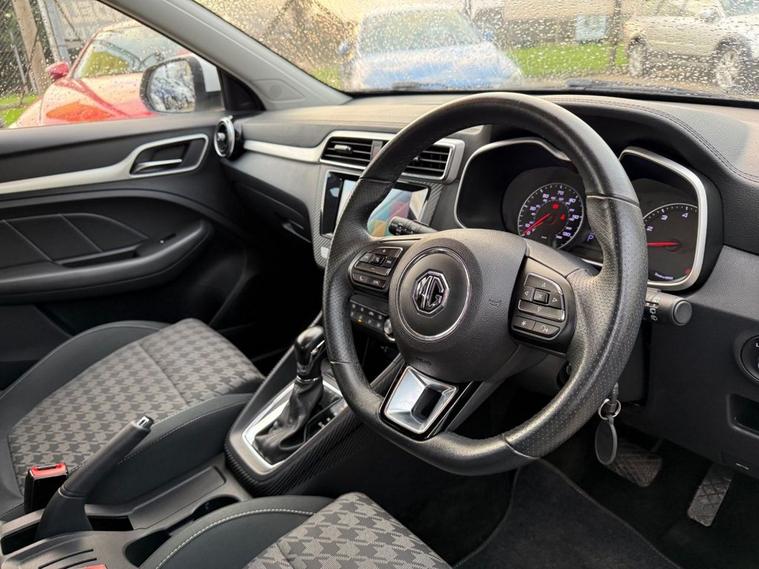 This 2019 MG ZS Excite is a practical and well equipped compact SUV finished in white and paired with a smooth automatic transmission. With 34, 788 miles it offers a comfortable drive modern technology and strong safety features making it an excellent everyday vehicle. Powered by a 1.0 litre turbocharged petrol engine producing 109 bhp the MG ZS delivers a balanced mix of performance and efficiency returning a combined 38.6 mpg. The Excite trim comes well specified featuring an 8 inch colour touchscreen Apple CarPlay Bluetooth connectivity DAB radio and USB mobile phone charging. Inside the cabin offers good comfort and flexibility with air conditioning a leather steering wheel 60 40 split folding rear seats and manually adjustable front seats. Exterior highlights include 17 inch turbine alloy wheels silver roof rails electrically adjustable heated mirrors and LED daytime running lights. Safety and driver assistance features include rear parking sensors cruise control hill launch assist tyre pressure monitoring multiple airbags ABS with EBD electronic stability programme and ISOFIX child seat points. The car comes with a 6 months warranty included and is also supplied with a 12 month MOT for added peace of mind.