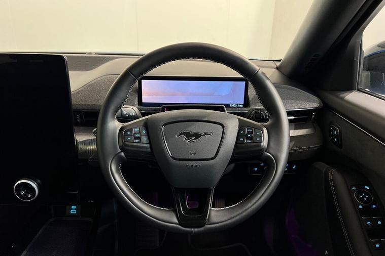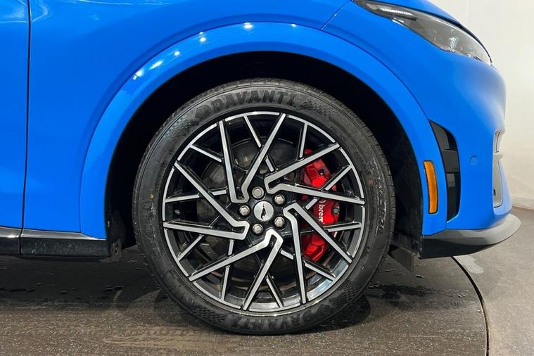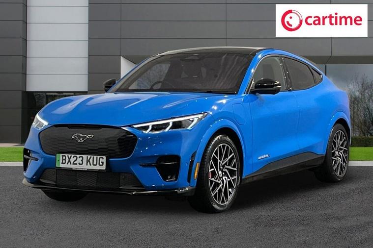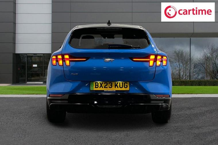 This 2023 Ford Mustang Mach-E GT Extended Range boasts exceptionally low mileage for its age, having covered just 15, 886 miles. This electric vehicle, presented in GT trim, features a Four Wheel Drive drivetrain and a substantial 99 kWh battery, offering a maximum range of 304 miles when new. For your convenience, it includes front and rear parking sensors with parking assistance, a wireless device charging pad, and adaptive cruise control as part of its Active Drive Assist system. The Ford Sync 4A infotainment system, complete with a 15.5 inch touchscreen, seamlessly integrates Android Auto and Apple CarPlay, further enhanced by a rear view camera for effortless parking. Experience exhilarating performance with the Mustang Mach-E GTs impressive acceleration, achieving 0-60mph in a mere 3.6 seconds, a figure that highlights its superior capability compared to many other vehicles in its class. Charging is straightforward, with a full charge at home taking approximately 14 hours and 36 minutes using a 7kW charger, while rapid public charging can replenish the battery from empty to 80% in as little as 51 minutes. These charging times demonstrate the practicality and efficiency of this advanced electric SUV, making it a compelling choice for those seeking both performance and everyday usability.