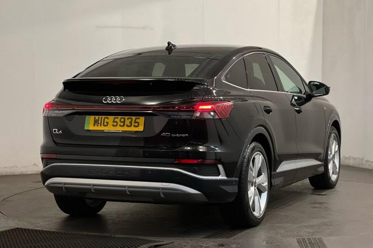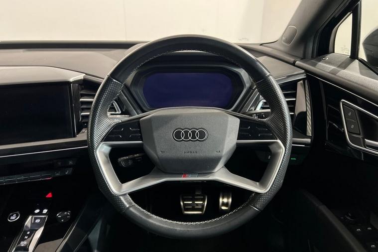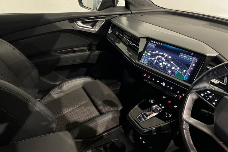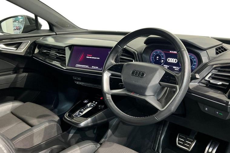 This 2022 Audi Q4 e-tron S line boasts a clear vehicle history and has had only one owner, offering peace of mind for its next custodian. As a fully electric vehicle, it features an 82 kWh battery, providing an impressive maximum range of 322 miles when new. This S line variant comes equipped with LED headlights and daytime running lights, rear parking sensors with parking assistance, and a Bluetooth interface for seamless connectivity. Inside, youll find the comfort of heated front seats and the convenience of 3 zone electronic climate control, ensuring a pleasant environment for all occupants. The Audi Q4 e-tron S line stands out with its substantial boot space, offering ample room for your luggage or shopping. Its electric powertrain allows for a full charge at home using a 7kW charger in approximately 11 hours and 30 minutes, while rapid charging on public networks can take you from empty to 80% in as little as 30 minutes. These charging capabilities, combined with its extensive range and generous storage, position this Q4 e-tron as a practical and efficient choice for everyday driving and longer journeys.