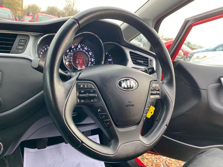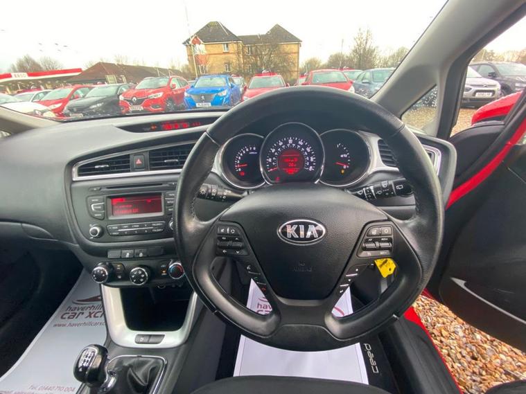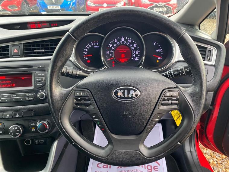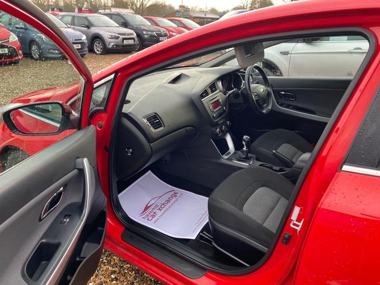 ONLY 54, 036 MILES+7 INCH TOUCHSCREEN SATELLITE NAVIGATION SYSTEM+DAB DIGITAL RADIO-APPLE CARPLAY/ANDROID AUTO+BLUETOOTH WITH MUSIC STREAMING+AIR-CONDITIONING+AUTOMATIC HEADLIGHT ACTIVATION+PARKING ASSISTANCE WITH PARKING CAMERA+INFRA RED PAINT+16 INCH ALLOY WHEELS. At Haverhill Car Xchange we would like to offer you our LOW MILEAGE Kia Ceed Hatchback which has been finished in an Infra Red paint with Black Premium Cloth upholstery. Excellent Specification Includes a 7 Inch Touchscreen Satellite Navigation System with European Mapping with Traffic Message Channel, Kia Connected Services Featuring TOMTOM-Traffic-Speed Cameras-Local Search and Weather Updates, DAB Digital Radio with MP3 Compatibility, Apple CarPlay/Android Auto, Bluetooth with Music Streaming, USB and AUX Ports for Connection of an Audio Media Device-iPod-Memory Stick, 12 Volt Power Sockets in the Front and Rear, Air-Conditioning, Gear Shift Indicator, Cruise Control with Speed Limiter, All-Round Electric Windows with Drivers Auto Up-Down Function, Body Coloured Bumpers/Door Handles/Rear Roof Spoiler and Door Mirrors with Integrated Side Indicators, Automatic Headlight Activation, Welcome and Follow-Me-Home Headlight Function, LED Headlights, Cornering Lights, Parking Assistance with Parking Camera, Multifunction Steering Wheel, 16 Inch Alloy Wheels, Heated Rear Window with Timer, ABS Breaking System, Child Safety Door Locks, Airbags, Alarm, Immobiliser, Remote Central Locking and ISOFIX Anchorage Points for Child Seats.