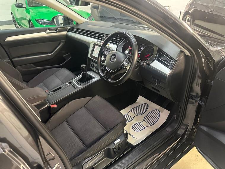 AWAITING PREPARATION (MORE PICTURES AND WALK-AROUND VIDEO TO FOLLOW) - Southwest Motor Company are pleased to be offering for sale this well-presented, 2-owner, 2019 Volkswagen Passat TDI SE Business Estate. Finished in the gorgeous Manganese Grey Metallic, with full black interior and 17-inch alloy wheels, it has a smart, elegant look. Beautifully well kept with a full service history, there can be no doubt that this Passat has been very well cared for. A brilliant, well-made, spacious cabin with ISO-Fix Childseat anchors and a large boot ensures these vehicles work exceptionally well in a family setting. Being an SE Business model, this Passat also benefits from brilliant specifications including satellite navigation, Apple CarPlay/Android Auto Smartphone connectivity, Bluetooth, DAB radio, multimedia connectivity, heated Ergo-Comfort seats, Automtic dual zone climate control, Automtic lights, rain-sensing wipers, electrically operated, heated and folding wing mirrors, and parking sensors front./rear, multifunction steering wheel and adaptive cruise control with collision avoidance, which ensure its a beautifully comfortable and well equipped vehile to drive and travel in. The 2.0L diesel engine offers the perfect blend of performance and economy, which is delivered through a smooth and accurate 6-speed manual transmission. With an impressive 70 mpg achievable on a run, and this vehicle also being ULEZ COMPLIANT, ensures this Passat is super cheap to own and run. A fantasitc 2 owner example with full service history, great specifications and brilliant economy. Supplied serviced with a long MOT and 3 months (extendable if desired) warranty. Part-exchange welcome. All our vehicles are HPI clear. All major debit/credit cards are accepted.